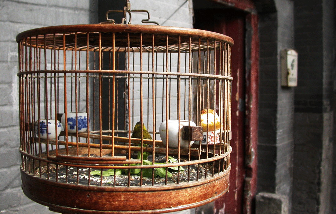 “Liu niao” means taking a walk with a pet bird, whether it be in a cage or tied to a string. For Beijing natives, Liu niao can be an after-dinner activity, where family and friends walk through the hutongs or gather at local parks. figcaption >