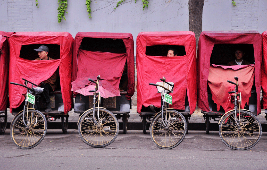 Rickshaw drivers offer tours of the rapidly disappearing hutongs to tourists from all over the world. Realizing their cultural value, the Beijing government has designated some hutong neighborhoods as protected historic areas. figcaption >