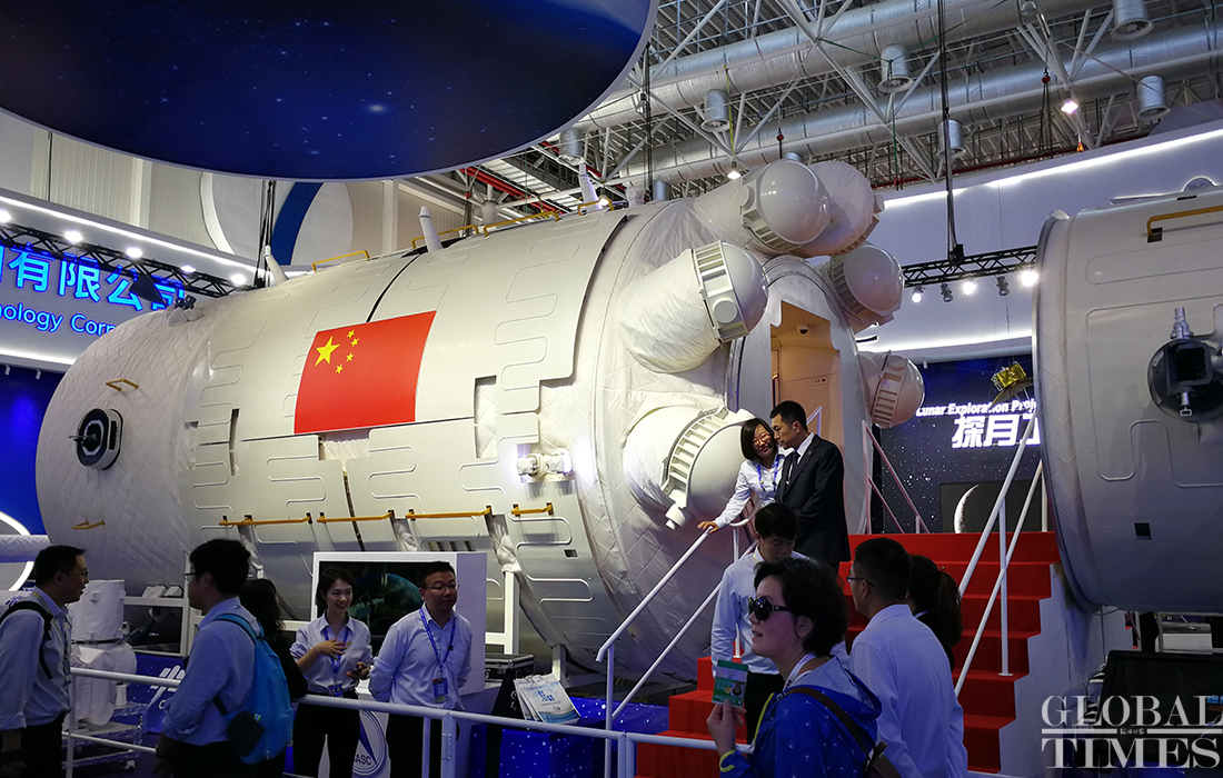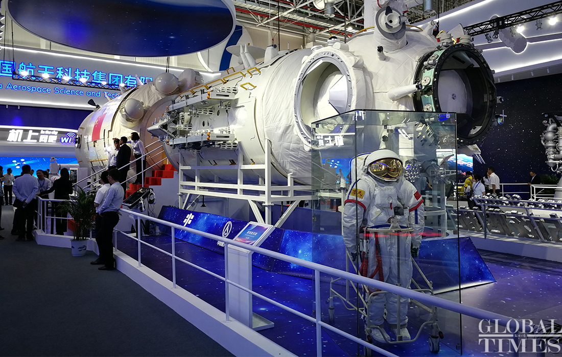A replica of a core module of Chinese Space Station is displayed at Air Show China 2018. Photo: Courtesy of China Aerospace Science and Technology Corporation