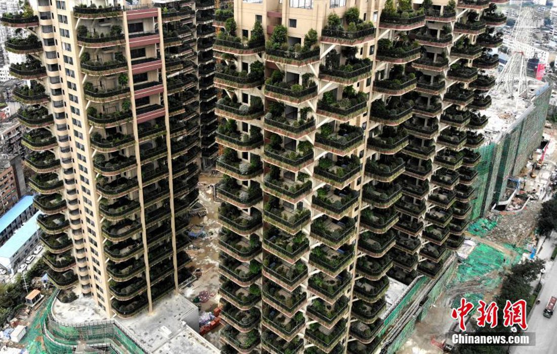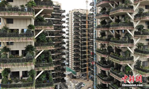 The first vertical forest residential community is under construction. Photo: Chinanews.com figcaption >