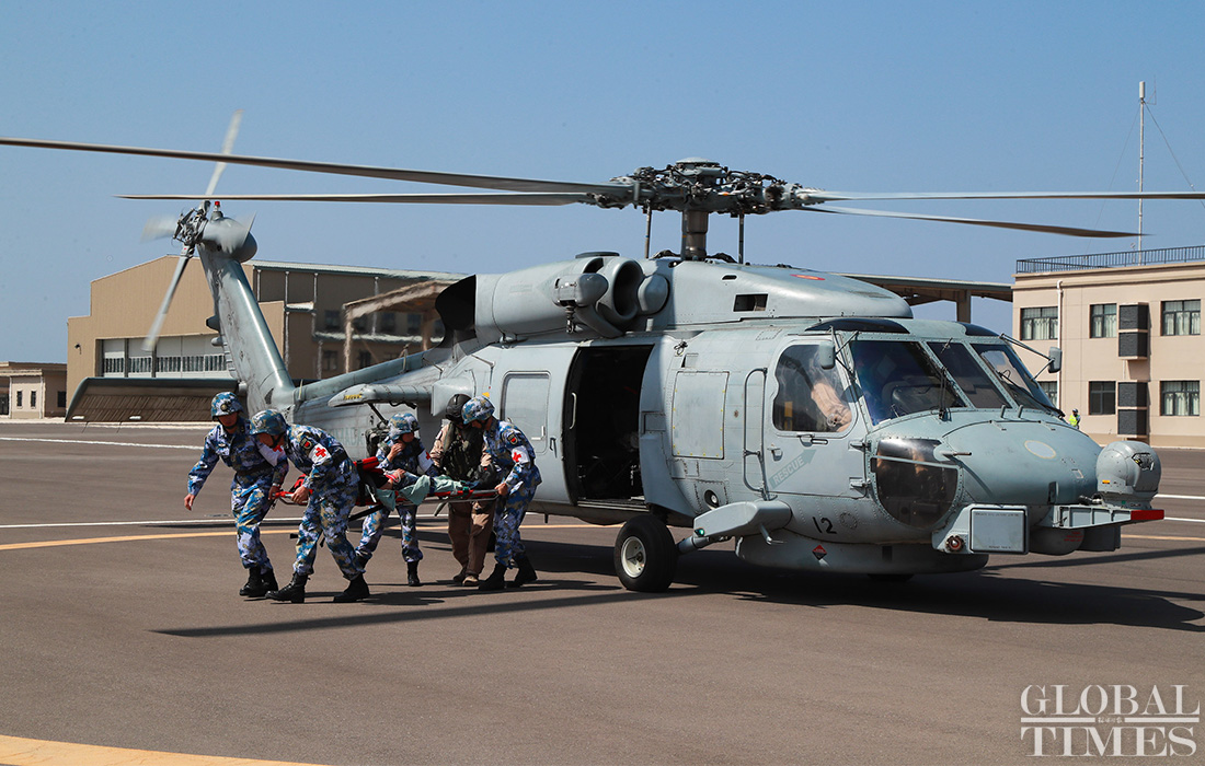 Chinese military personnel from the PLA Support Base in Djibouti conducted joint medical exercises with the Spanish Navy in the Gulf of Aden on December 1. For the first time, helicopters were deployed to land the wounded at the base. The exercise has further improved the capacity for humanitarian efforts in the region and enhanced cooperation between the base and the Spanish Navy.