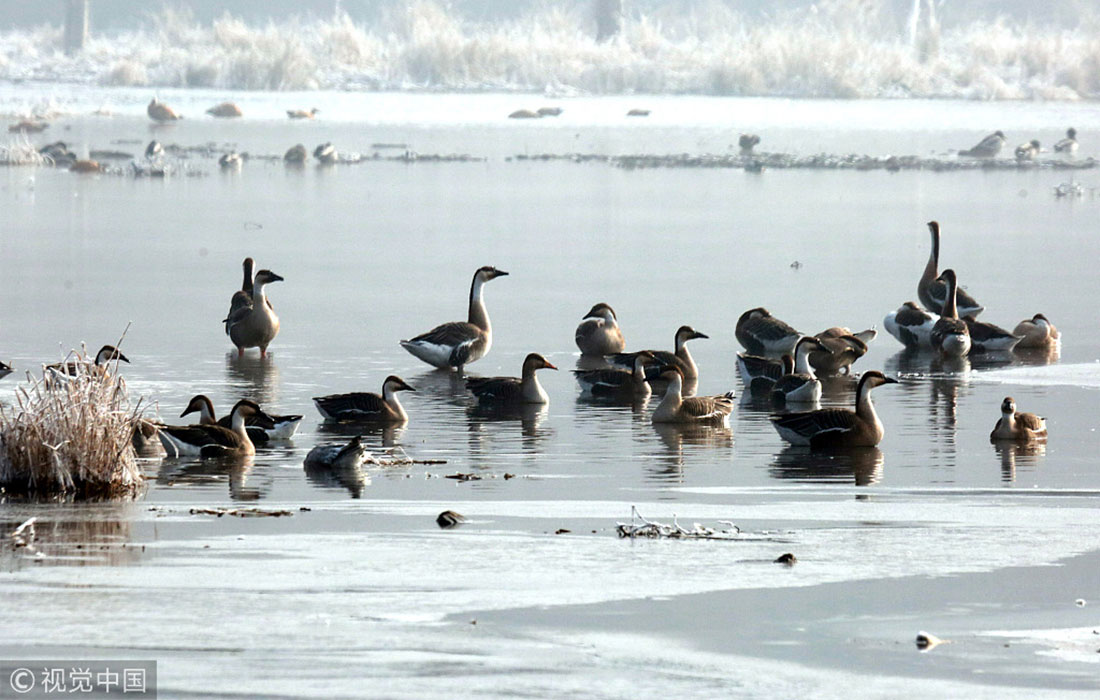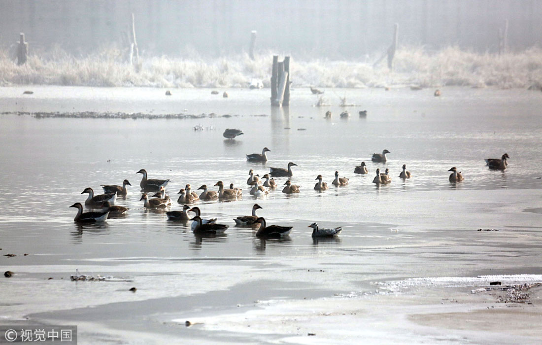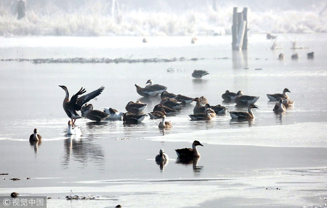 On January 14, 2019, a flock of wild ducks and wild geese were spotted gathering on the Hunhe River in Shenyang, Northeast China’s Liaoning Province, creating a spectacular scene. Lots of wild birds winter at Hunhe River. (Photos: VCG)