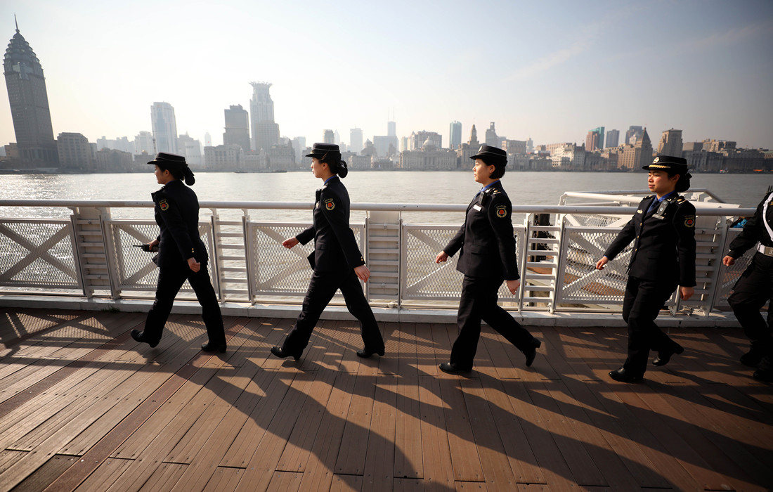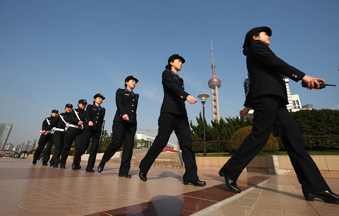 The female urban management officers patrol along the side of Huangpu River in Shanghai. Photo: Yang Hui/GT figcaption >