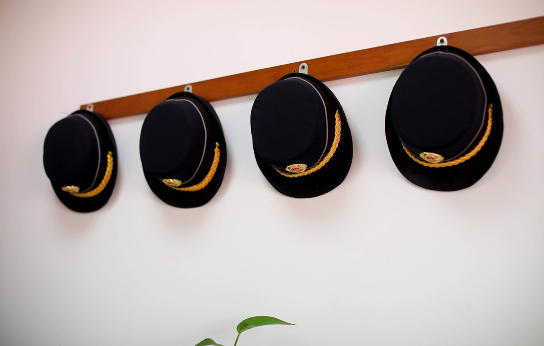 The officers’ uniform caps hang on the wall. Photo: Yang Hui/GT figcaption >