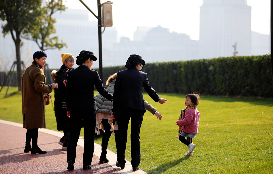The female urban management officers patrol the streets of Shanghai. Photo: Yang Hui/GT