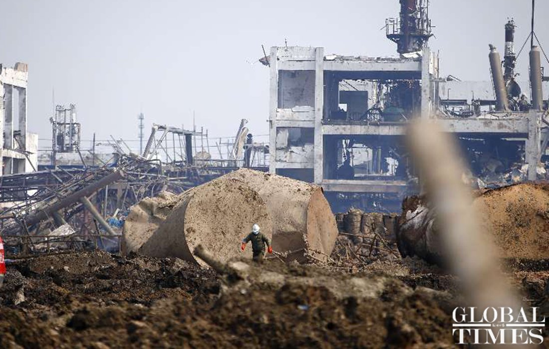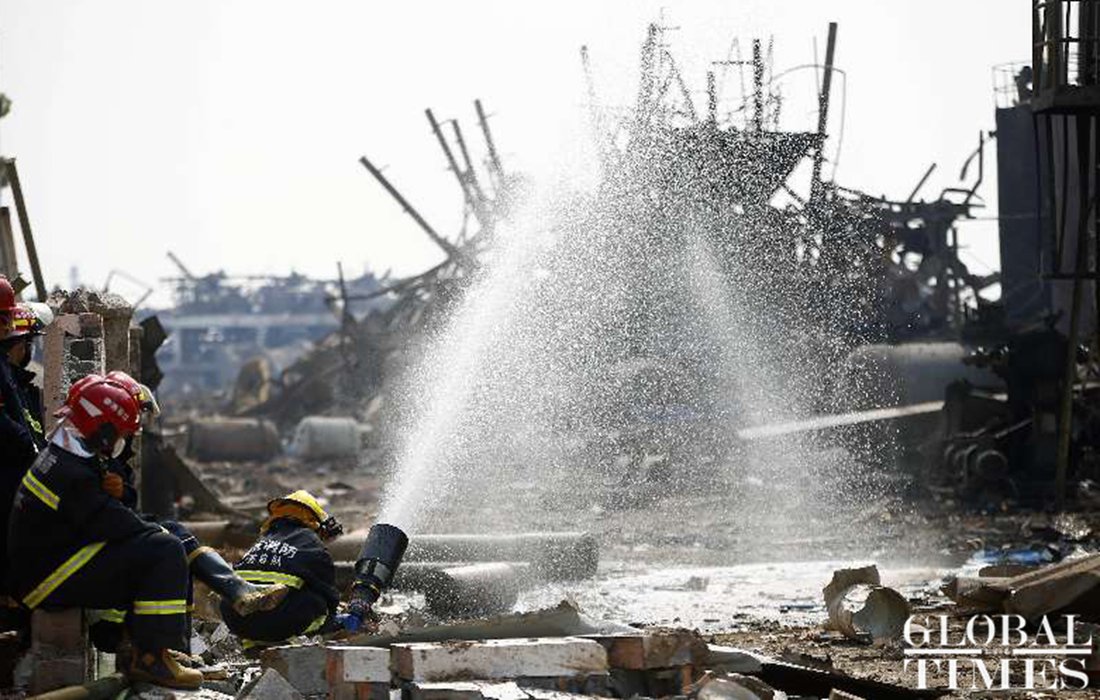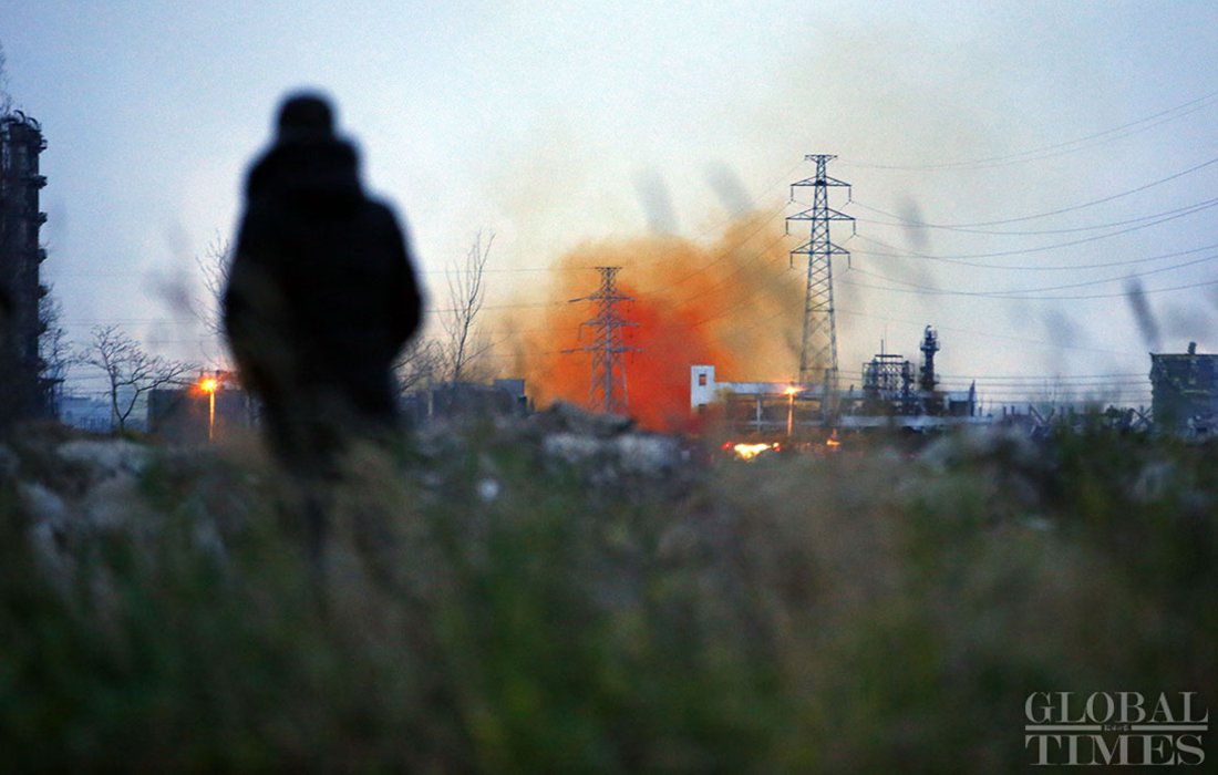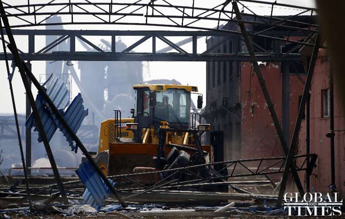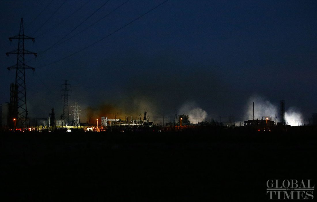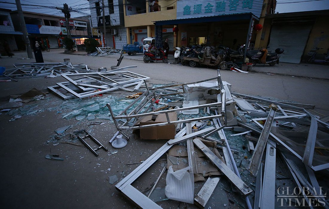 Photos taken on March 22, 2019, show that many houses in Wangshang village, the nearest village to the chemical explosion area in Xiangshui, East China’s Jiangsu Province, are damaged. The roads to the chemical plant are blocked and the plant is smoking at 6 pm local time. An explosion in the chemical plant on March 21 kills at least 62 people.