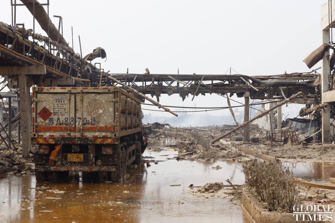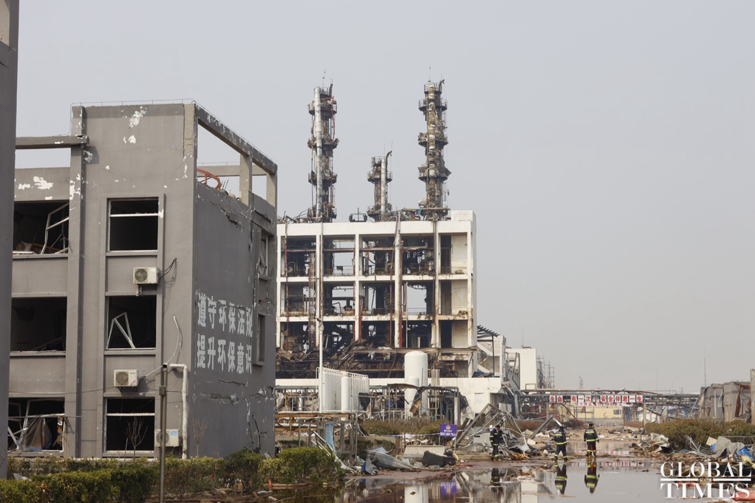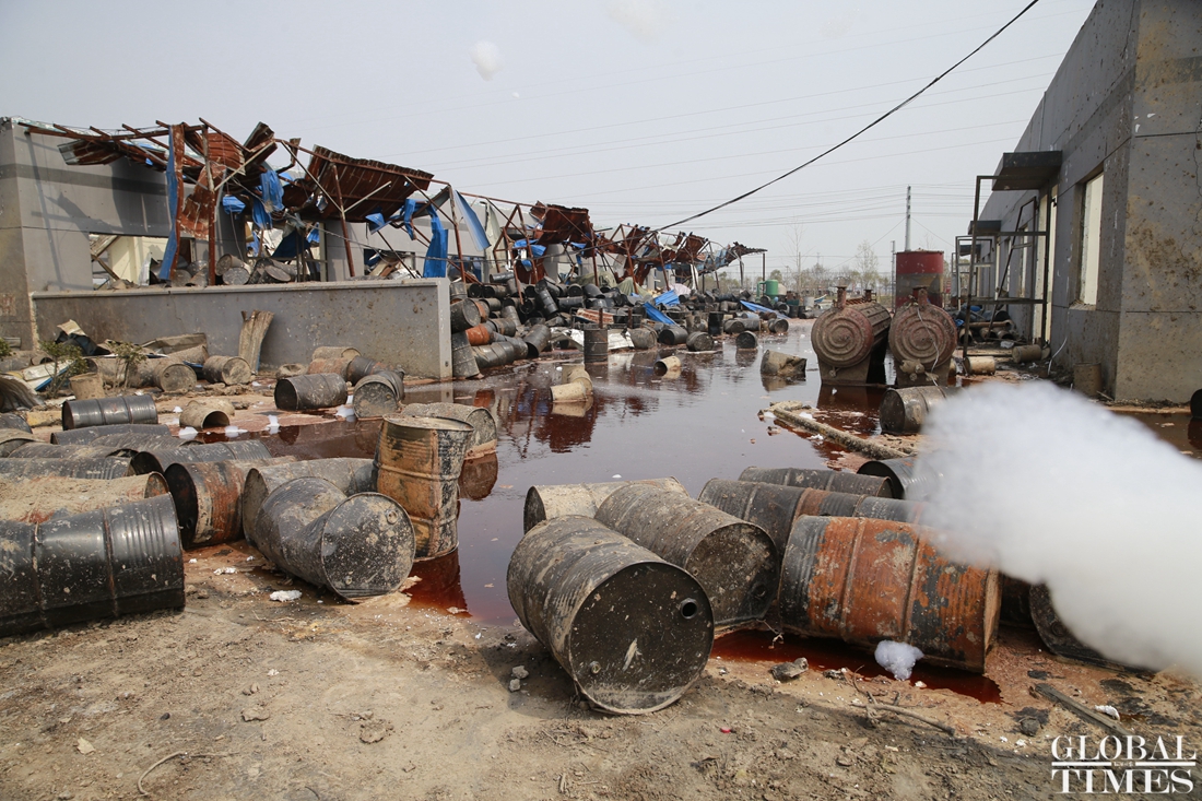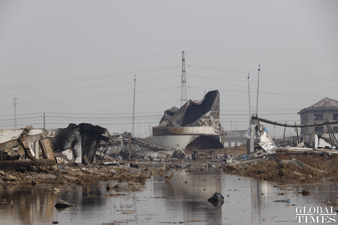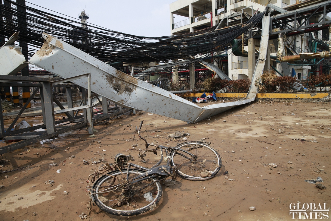 The Xiangshui chemical plant explosion site in East China's Jiangsu Province covers an area of 1.1 square kilometers and 17 companies are involved. Many workers were working at their positions when the explosion occurred. Reporters from the Global Times stepped in the core area of the Xiangshui chemical plant explosion site and recorded these shocking images. The explosion on March 21 has killed at least 64 people. Photos: Li Hao/GT