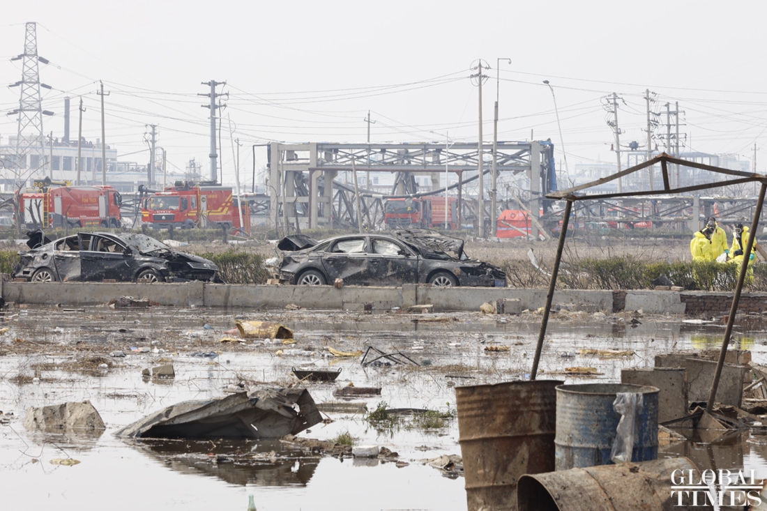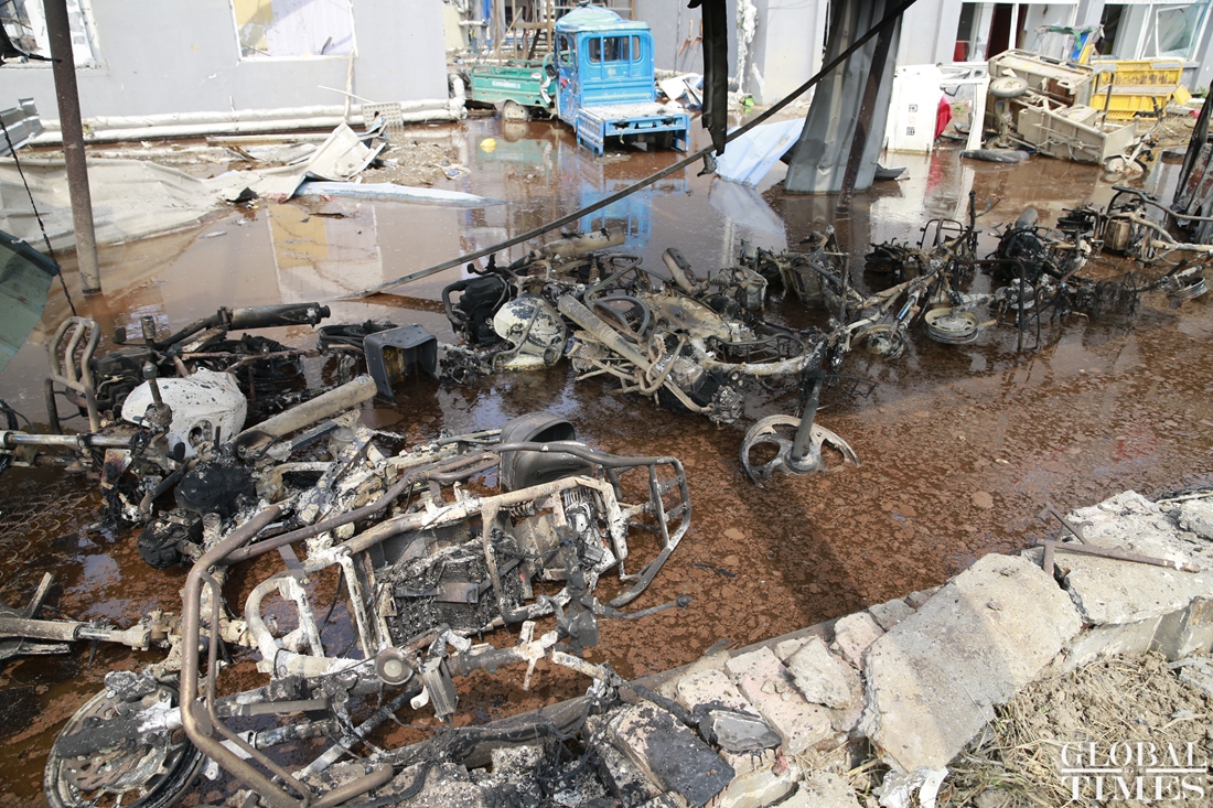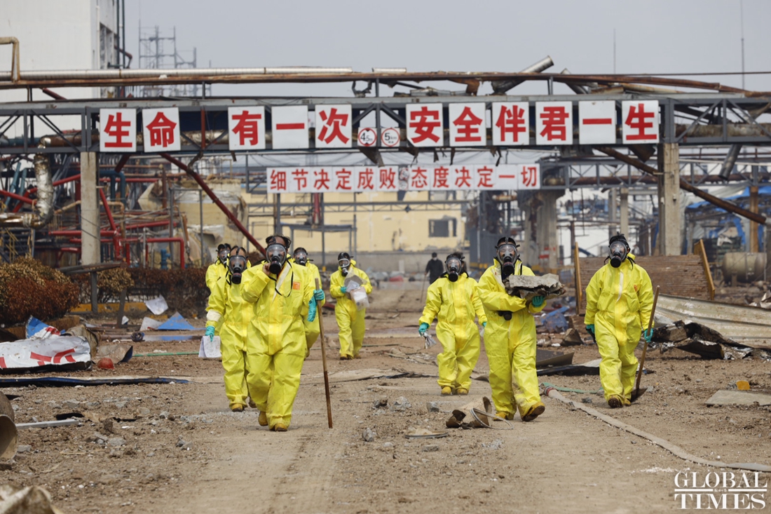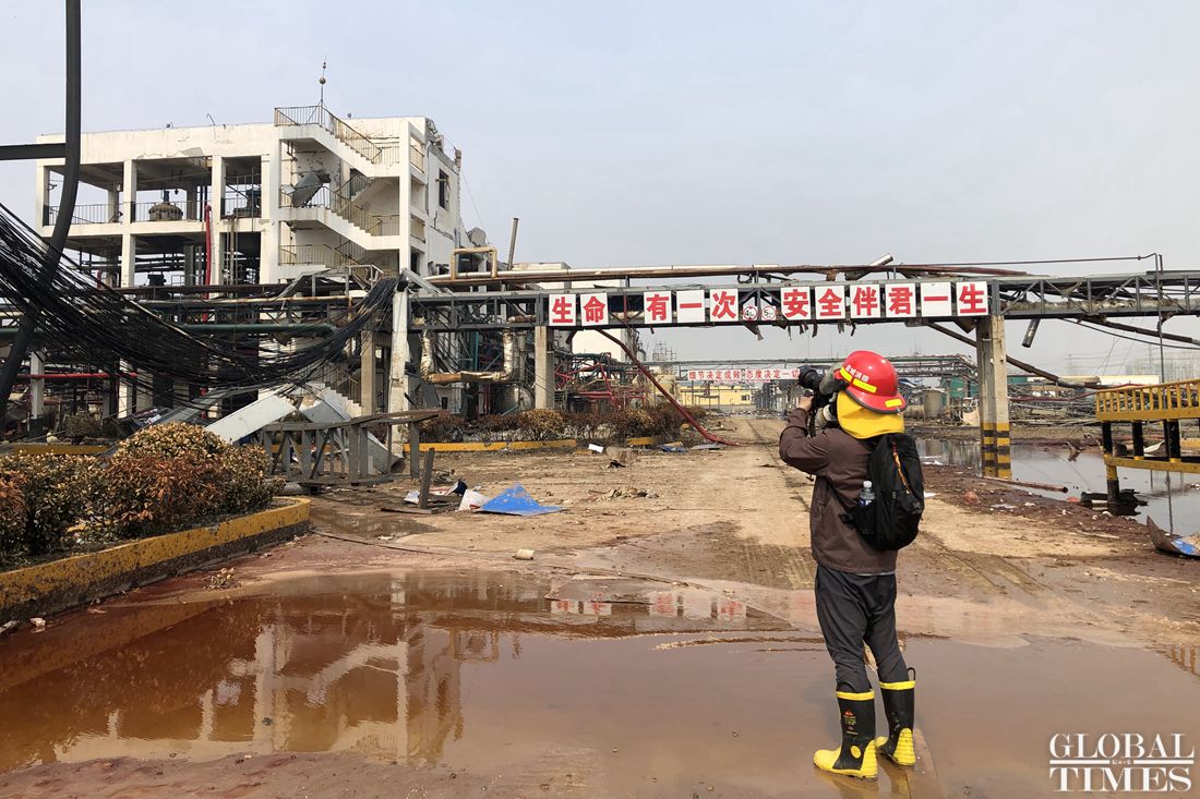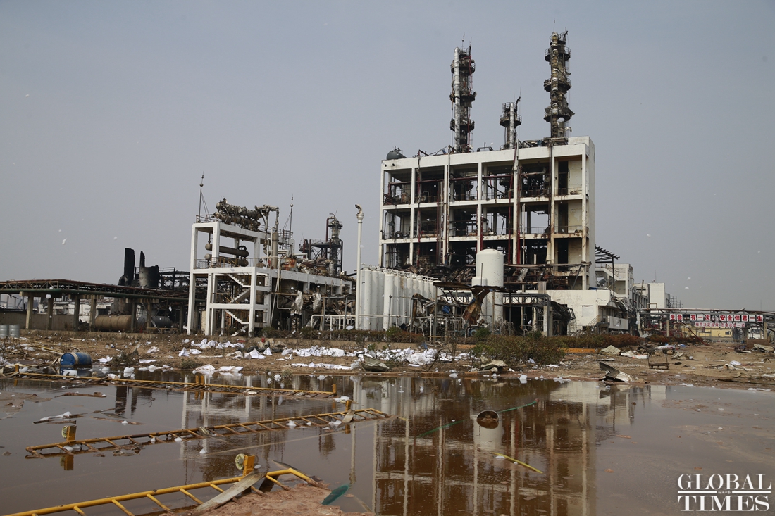 The Xiangshui chemical plant explosion site in East China's Jiangsu Province covers an area of 1.1 square kilometers and 17 companies are involved. Many workers were working at their positions when the explosion occurred. Reporters from the Global Times stepped in the core area of the Xiangshui chemical plant explosion site and recorded these shocking images. The explosion on March 21 has killed at least 64 people. Photos: Li Hao/GT