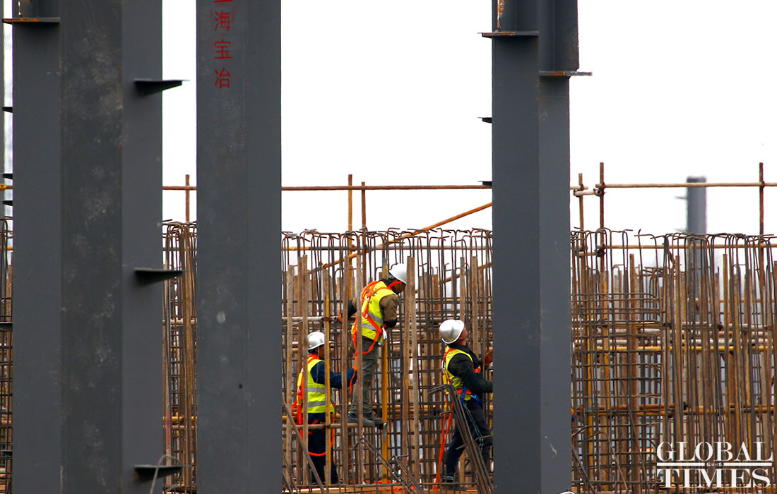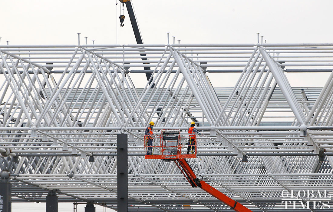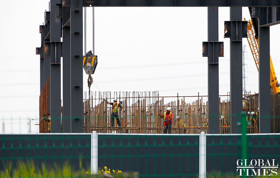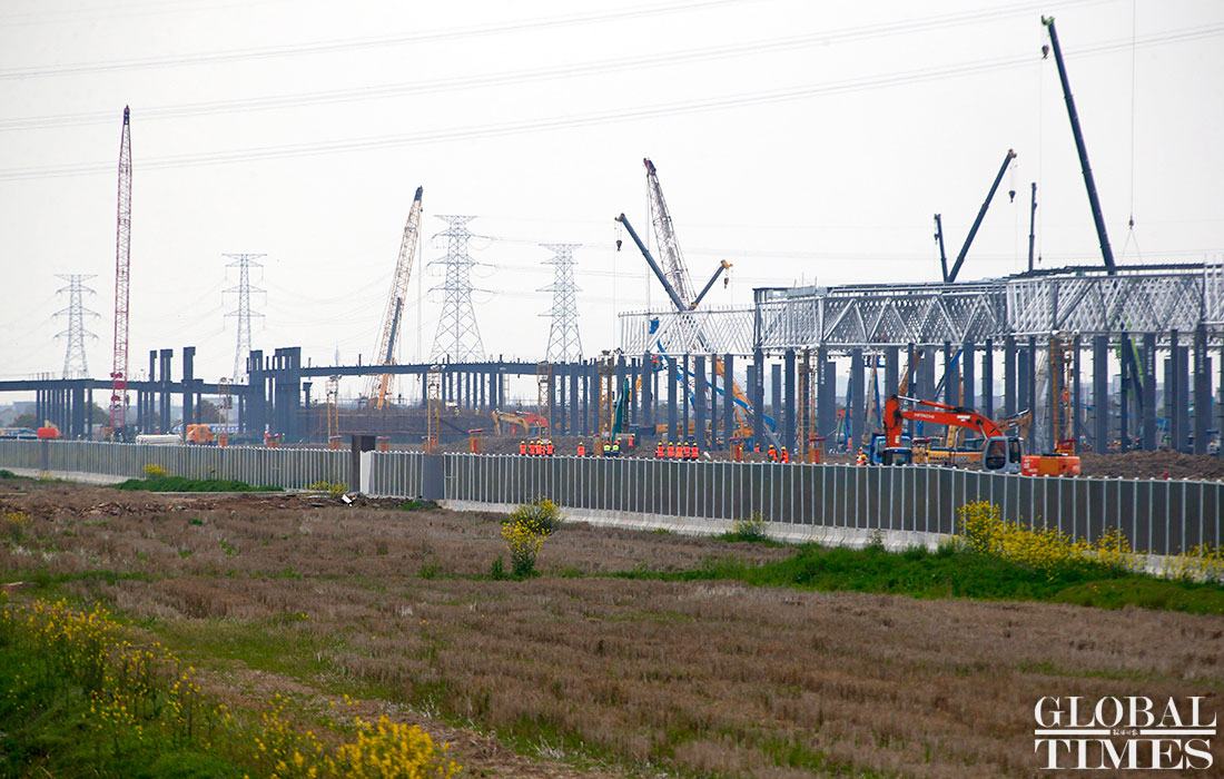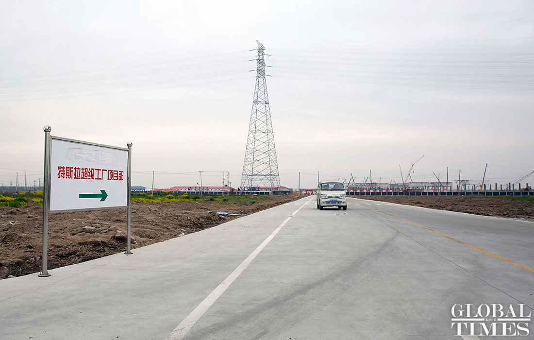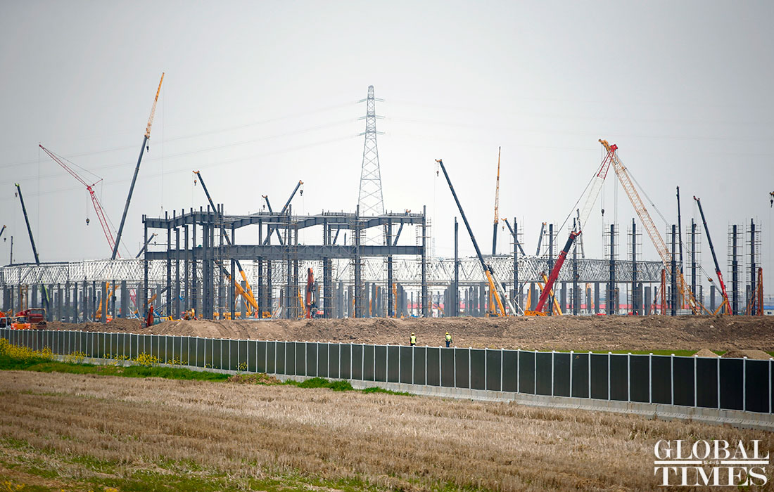 Photos taken on April 2 show the ongoing construction work of Tesla’s China factory in East China’s Shanghai. The first phrase construction of the factory is nearly finished, and the whole project is expected to finish in July or August this year, a worker said. (Photos: Yang Hui/GT)