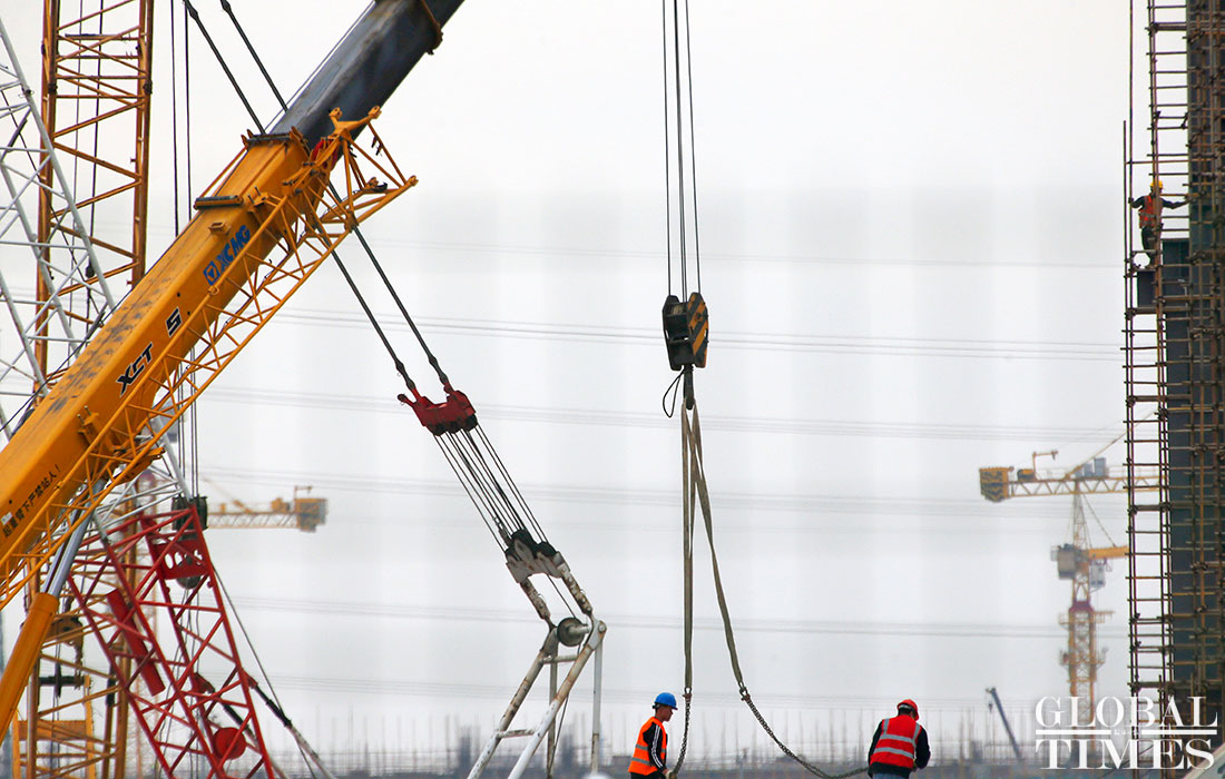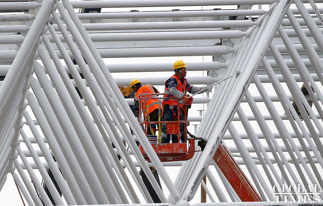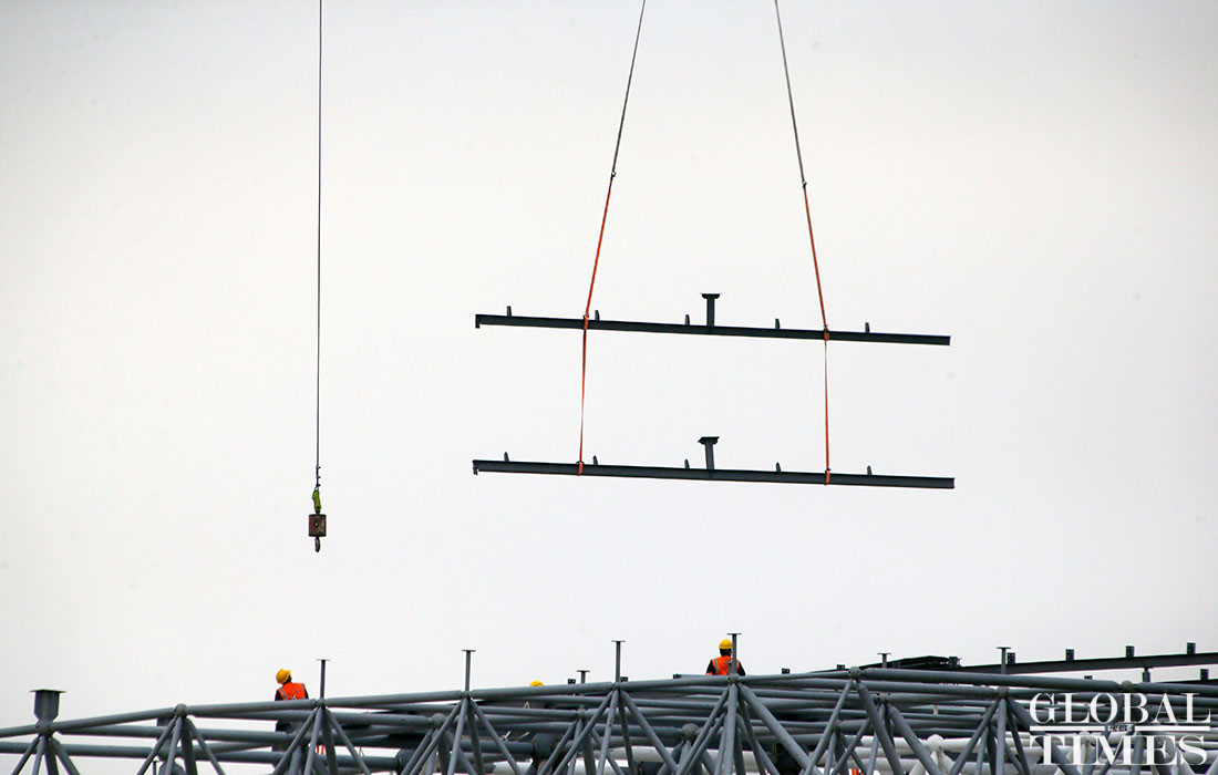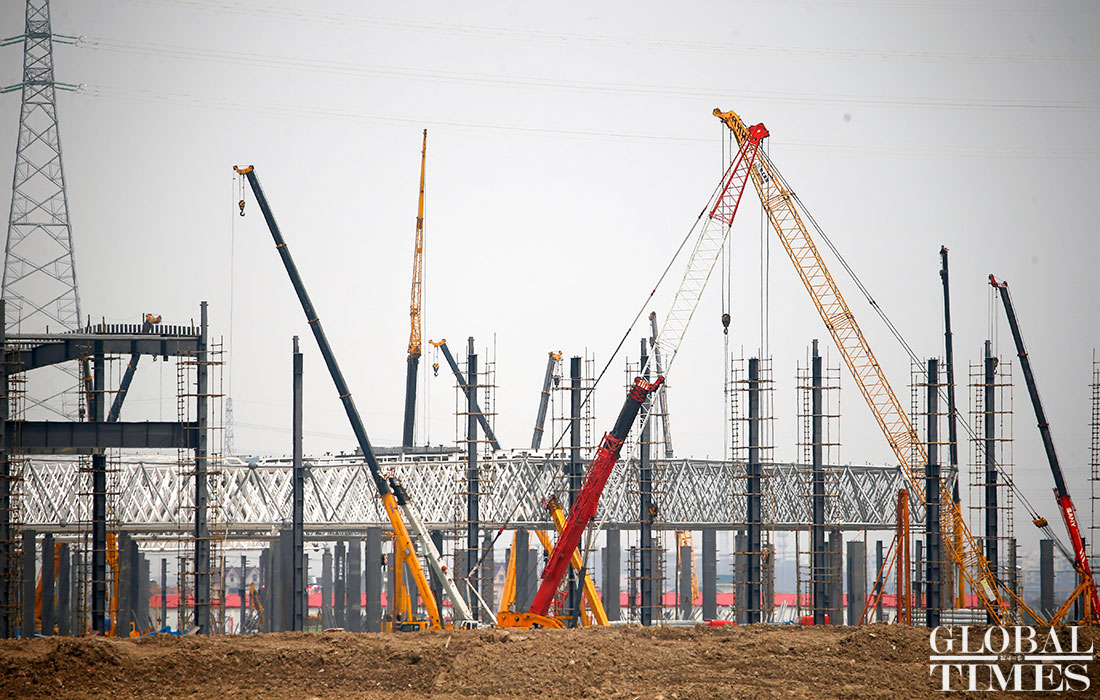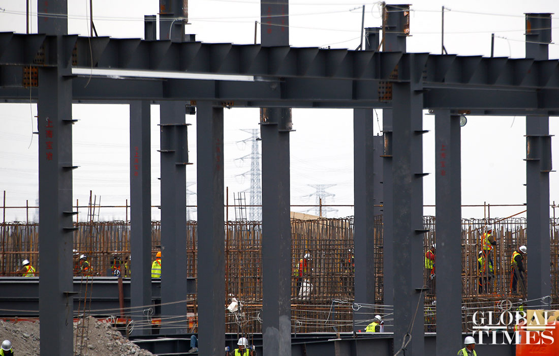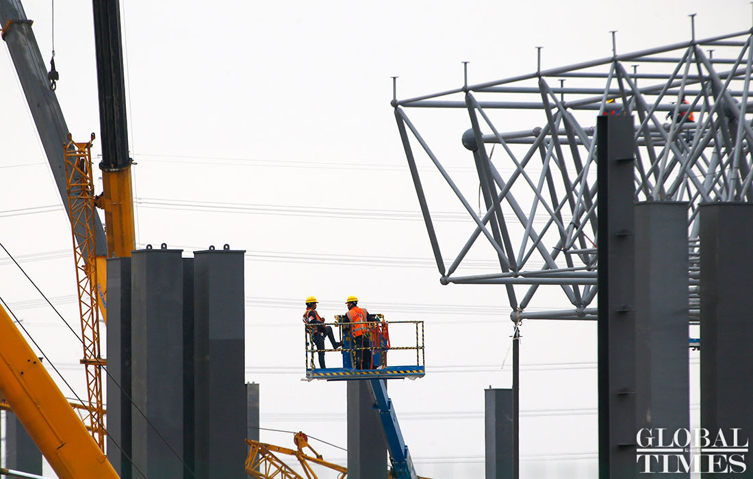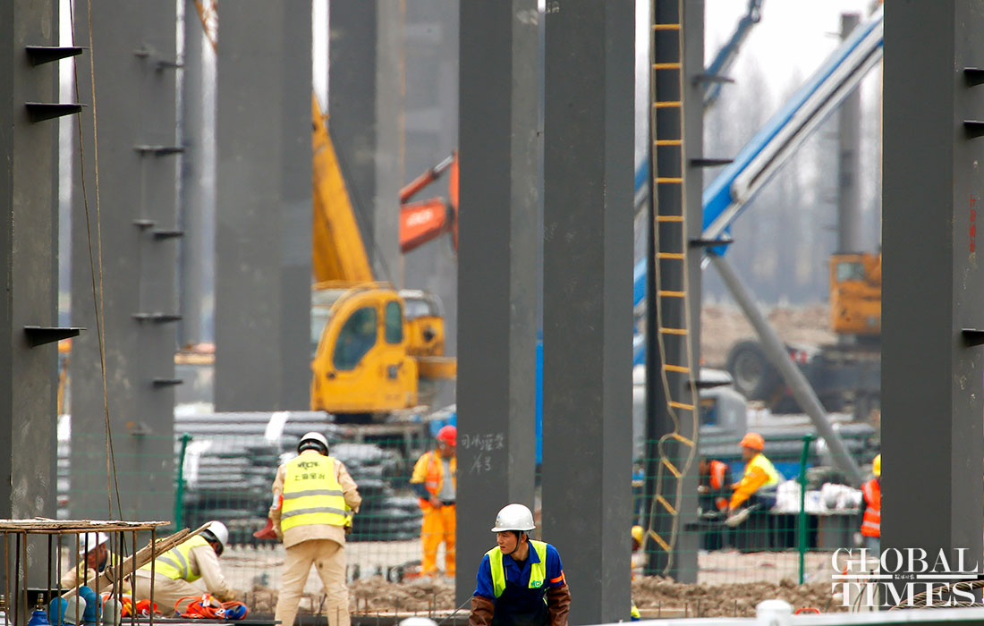 Photos taken on April 2 show the ongoing construction work of Tesla’s China factory in East China’s Shanghai. The first phrase construction of the factory is nearly finished, and the whole project is expected to finish in July or August this year, a worker said. (Photos: Yang Hui/GT)