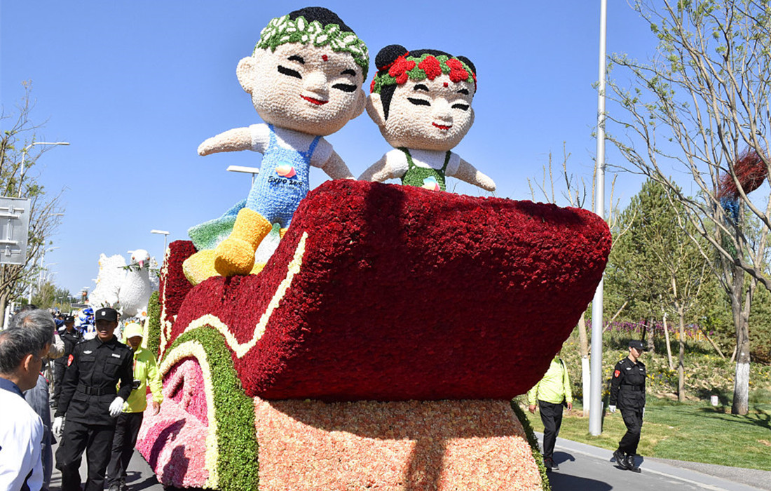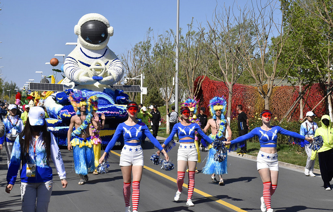 Dreamy floats paraded at the ongoing International Horticultural Exhibition in Yanqing, Beijing on May 5. Started on April 29, the expo will witness 2,500 cultural activities, including parades and performances representing world ethnic culture, and continue until October 7, 2019. (Photos: VCG)