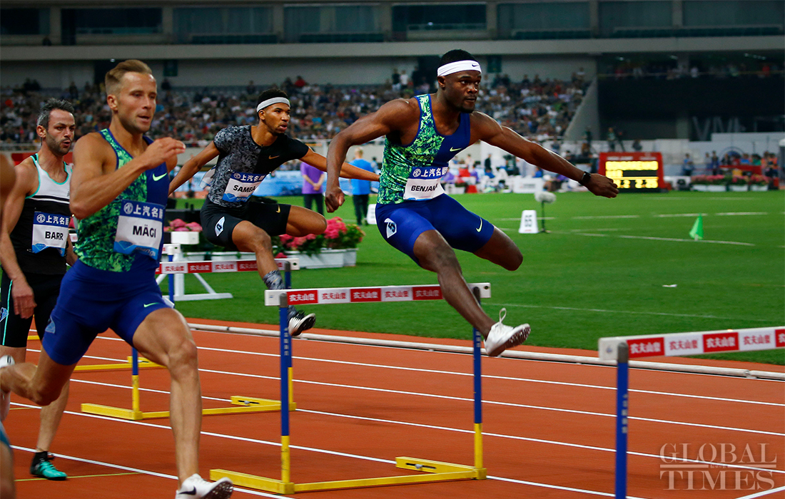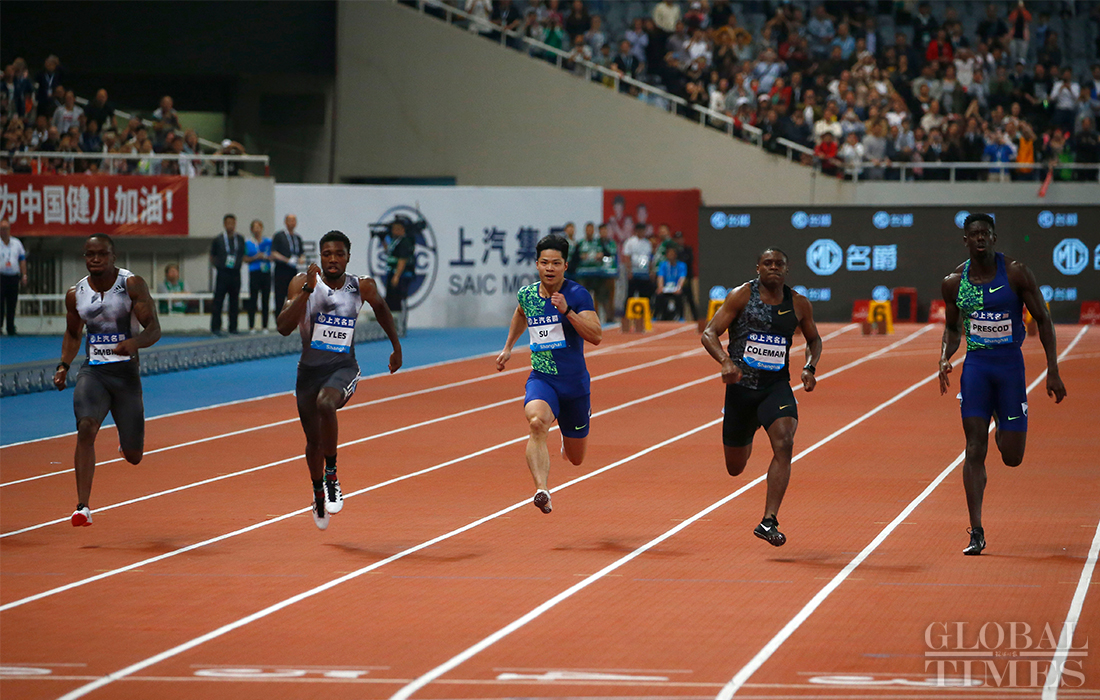The 2019 IAAF Diamond League event kicked off in Shanghai on Saturday. Athletes from multiple countries including Qatar's Abderrahman Samba for men's 400-meter hurdles and Germany’s Thomas Rohler for Javelin throw attended. China's top sprinter Su Bingtian finished 5th in the men's 100m race, but clocked 10.05 seconds to meet the entry standard for the 2020 Tokyo Olympic Games. China collected two gold medals and four silver medals as well as one Asian record on Saturday. (Photos: Yang Hui/GT)