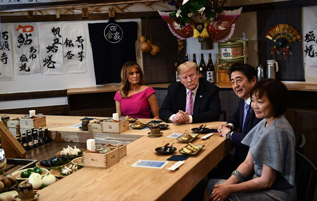 Japanese Prime Minister Shinzo Abe treated the visiting US President Donald Trump with Japanese cuisine at the Inakaya restaurant in the Roppongi district of Tokyo on May 26, 2019. Photos: VCG
