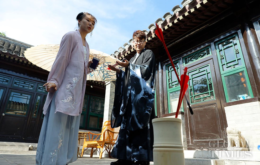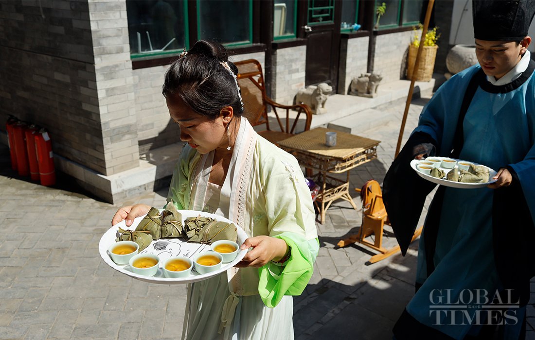 Hanfu (Chinese traditional costume) lovers from the Serene Garden of Art gathered together in a quadrangle in Beijing on Sunday to celebrate China’s Dragon Boat Festival.