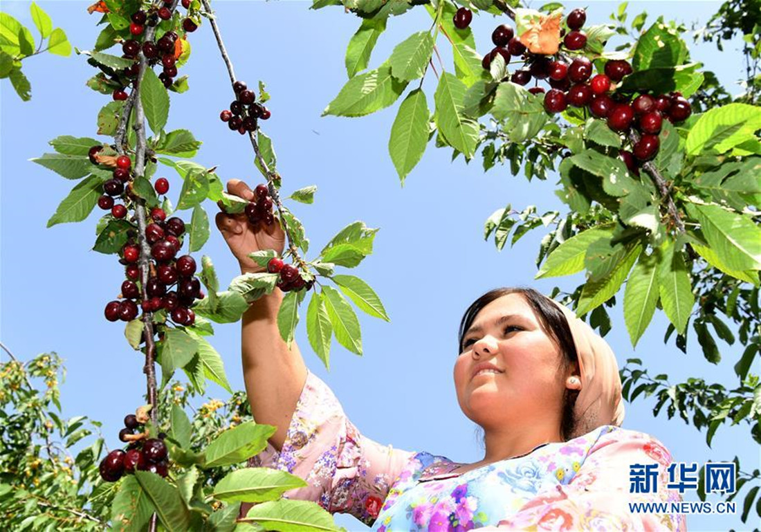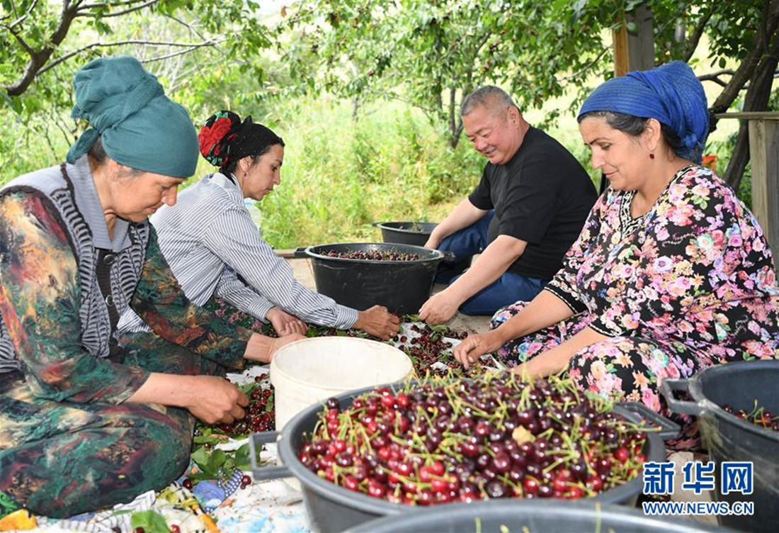 Farmers harvested cherries in Hisor, Western Tajikistan on June 12, 2019. A total of 40,000 cherry trees are planted in the 160-hectare orchard, which belongs to a China-Tajikistan joint venture. (Photos: Xinhua)