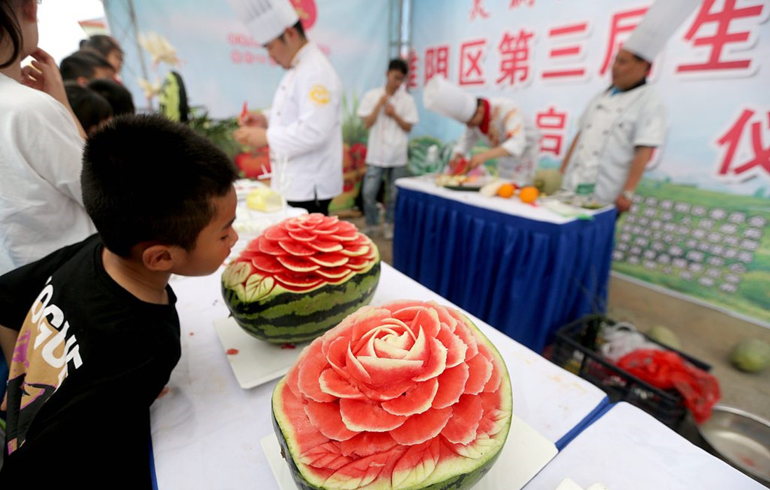 The 3rd Fruit-picking Festival kicked off in Huaian, East China’s Jiangsu Province on June 16. People in hordes competed to eat watermelons and performed folk dances during the opening ceremony of the event. (Photos: VCG)