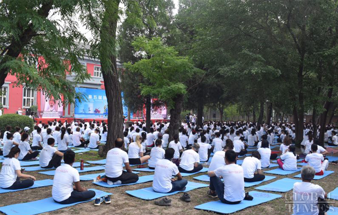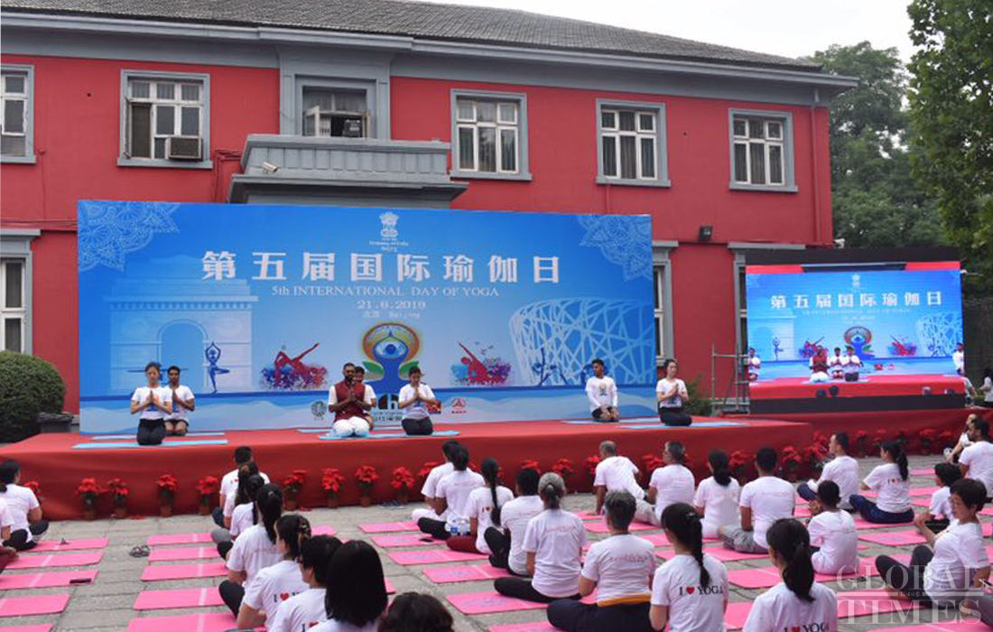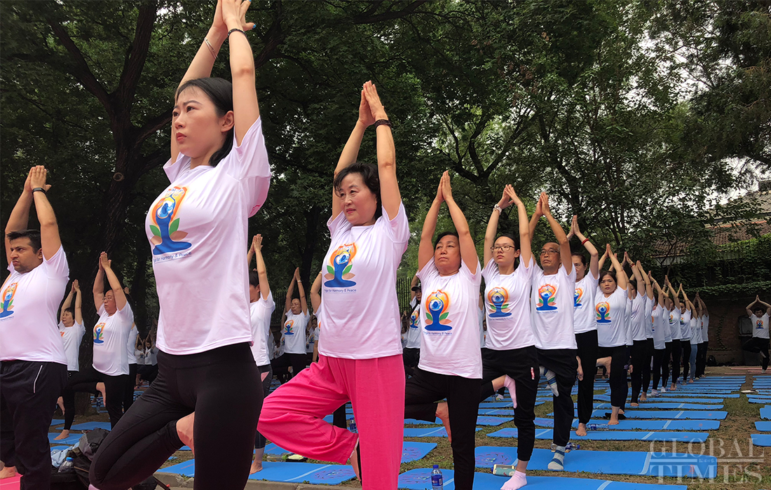 Hundreds join to celebrate the 5th International Yoga Day in India House, Beijing