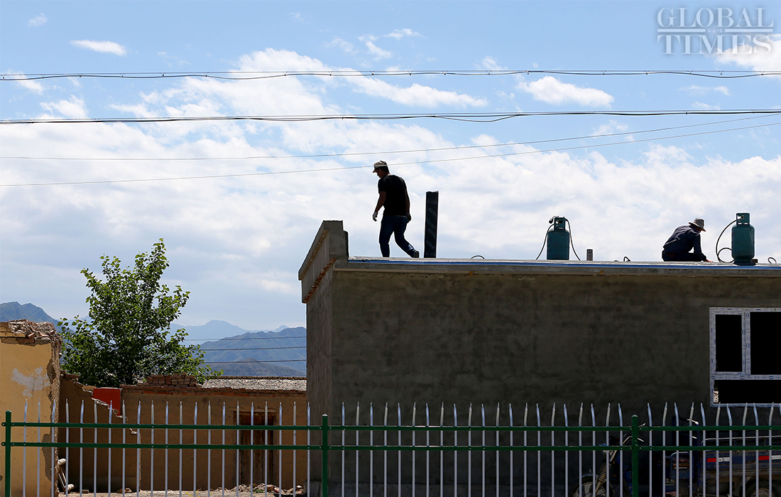 Villagers repair their house in Wenquan county. Photo: Yang Hui/GT