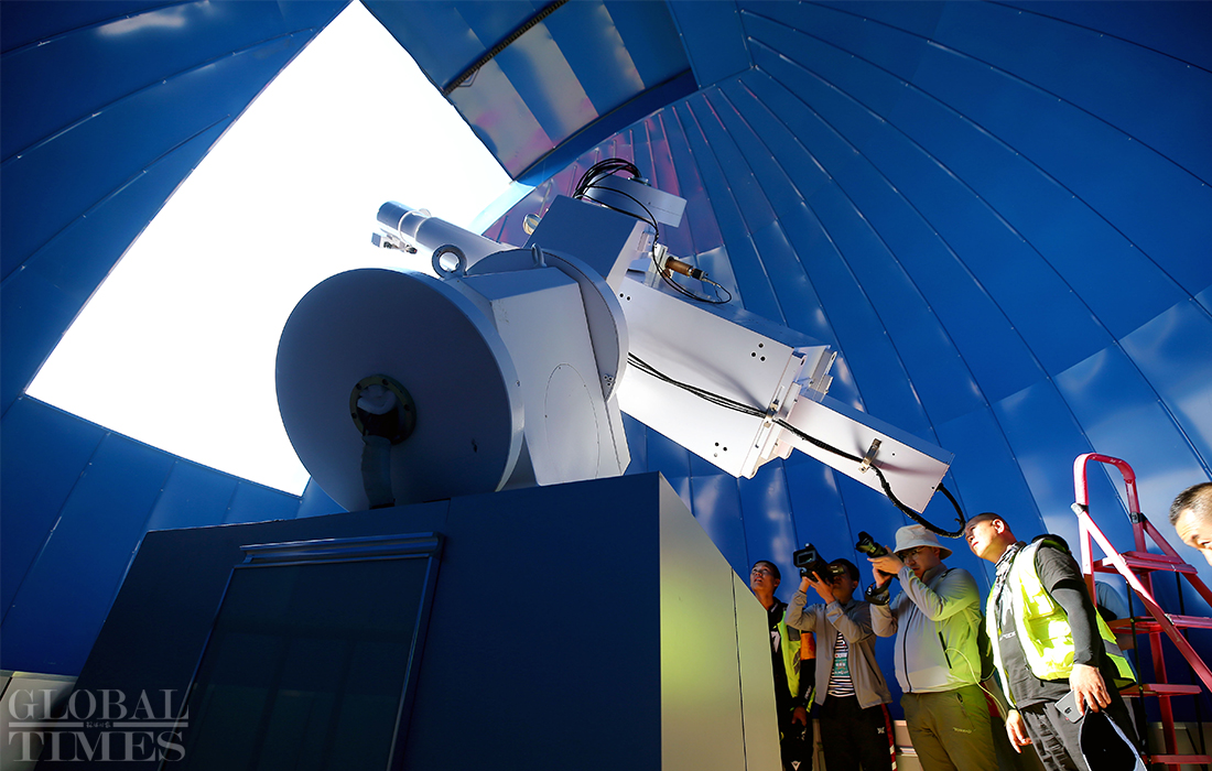People visit one among the two of China's solar magnetic field observatory telescopes in Wenquan county. Photo: Yang Hui/GT figcaption >