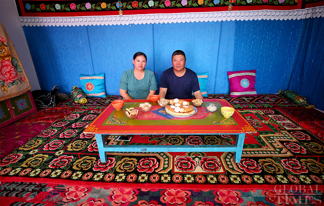 The county of Wenquan in Bortala Mongolian Autonomous Prefecture, Xinjiang Uyghur Autonomous Region aims to build itself into a nation-level ecological county. Wenquan, which means hot spring literally, is the home to Xinjiang Salamander, a four-legged amphibian, which can only be found in the county and neighboring Kazakhstan. Xinjiang salamander, as a live fossil in the region, can be traced back to 350 million years. Wenquan is also the home to one among the two of China's solar magnetic field observatory telescopes. Taking advantage of its ecology and environment, the county has a cold-water fishery cultivation base, which provides some unique fish to other areas in Xinjiang. Modern Mongolian Herdsmen in Bortala Mongolian Autonomous Prefecture in Xinjiang moved into modern houses from the traditional yurt. Usually men are responsible for rearing livestock while women make dairy products at home to contribute to the family income. Photos: Yang Hui/GT