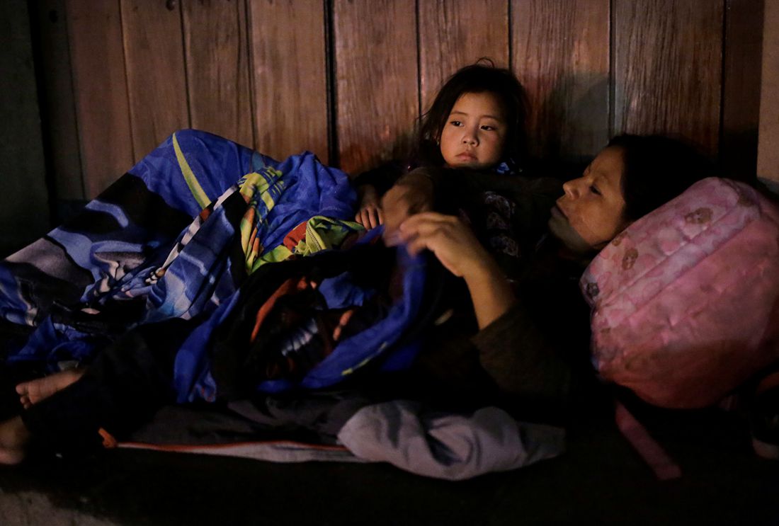 A migrant with her daughter, who returned to Mexico from the United States for their court hearing for asylum, as part of the legal proceedings under a new policy established by the US government, rest outside the Our Lady of Guadalupe Cathedral in Ciudad Juarez, Mexico on July 14, 2019. Photo: Jose Luis Gonzalez/VCG figcaption >