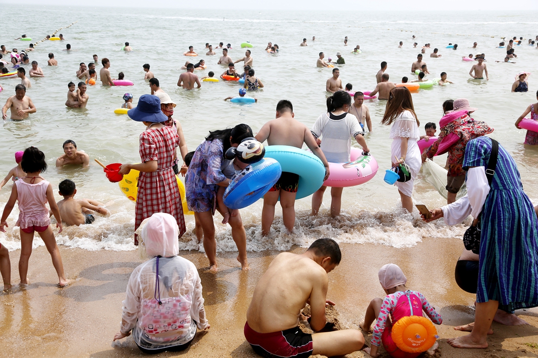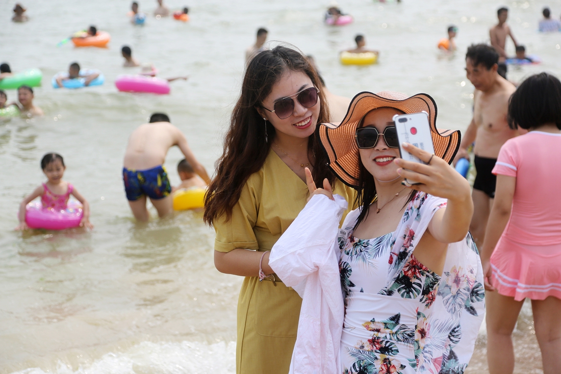 Tourists pose a photo at the Dashawan beach scene in Lianyungang, East China’s Jiangsu Province on July 23, 2019. Photo: VCG figcaption >