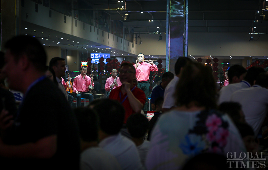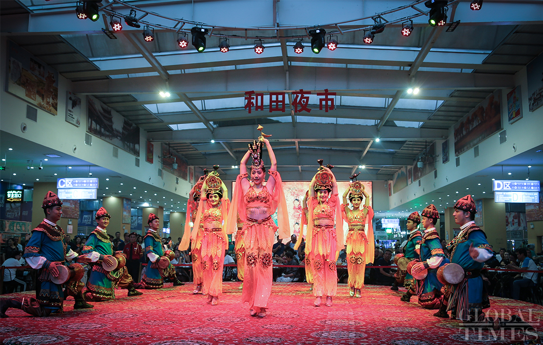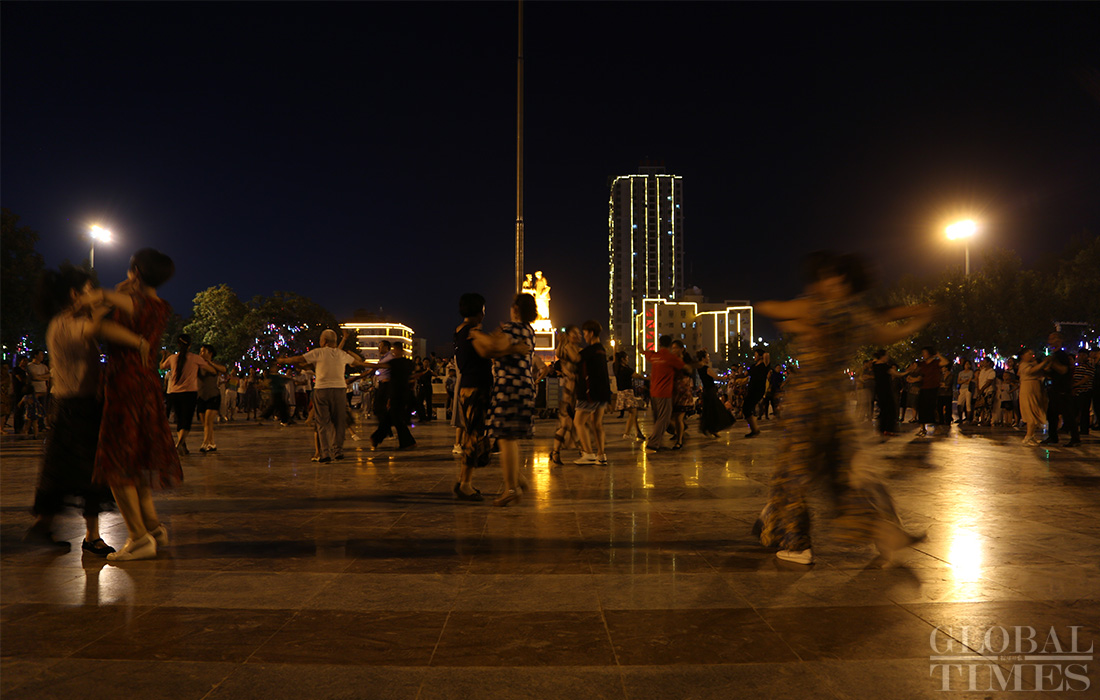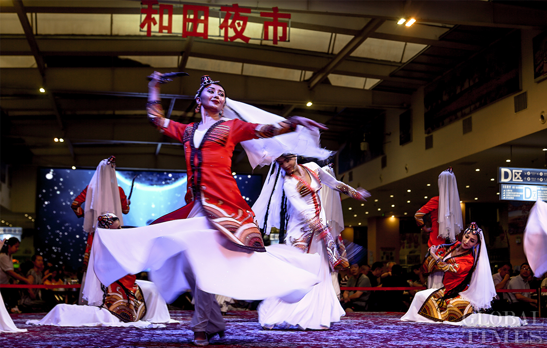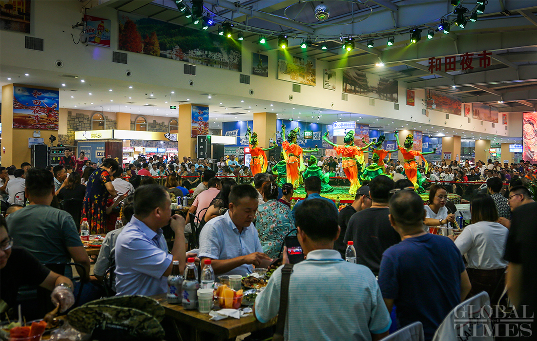 Nightlife in Hotan is plentiful, with activities such as square dancing, musical performances, sampling “must-eat” foods and local cuisine. Locals enjoy their after-work time at Hotan night market. Photos: Chen Qingqing/GT