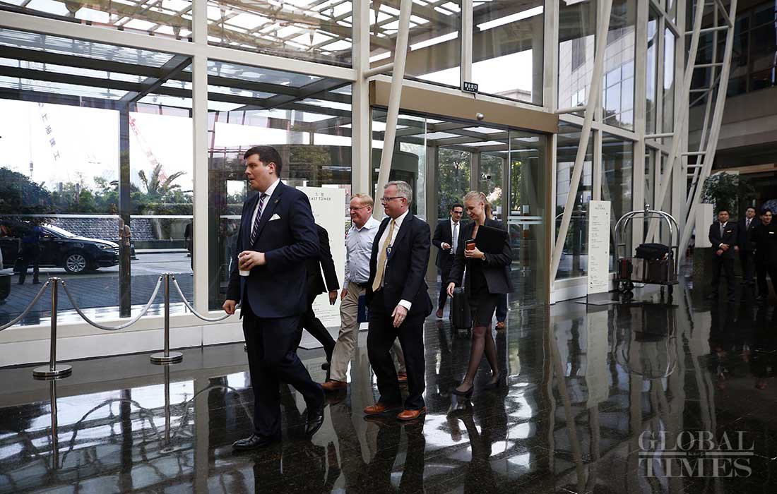 The 12th round of China-US high-level economic and trade consultations is scheduled to be held on July 30-31 in Shanghai. The US delegation arrived at Shanghai Fairmont Peace Hotel at 6:55 pm on Tuesday (Beijing time) and met the Chinese delegation. (Photos: Yang Hui/GT)