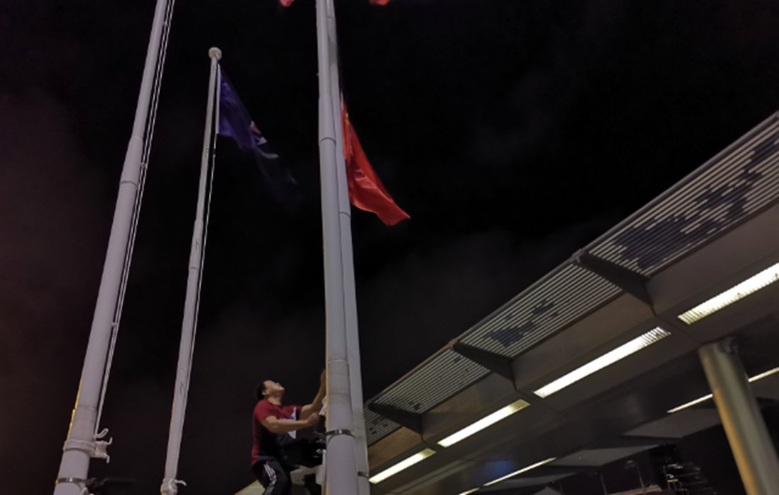 It followed actions by some Hong Kong protesters on Saturday who removed a Chinese national flag from its pole and tossed it into the Harbor in a move clearly aimed at tarnishing China’s dignity.