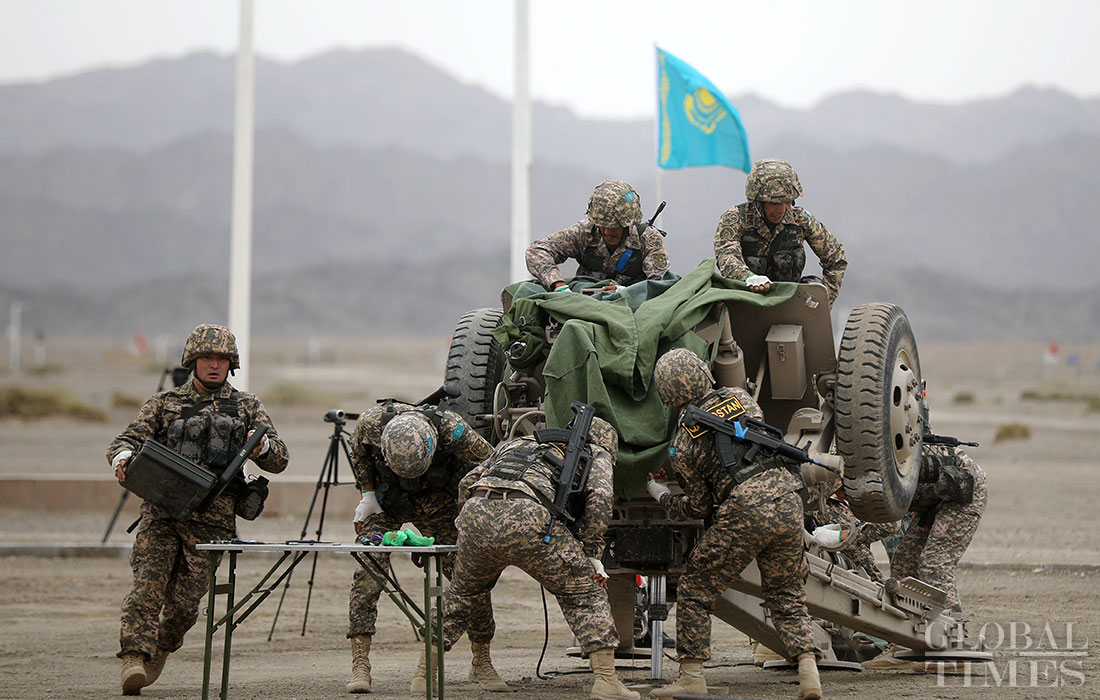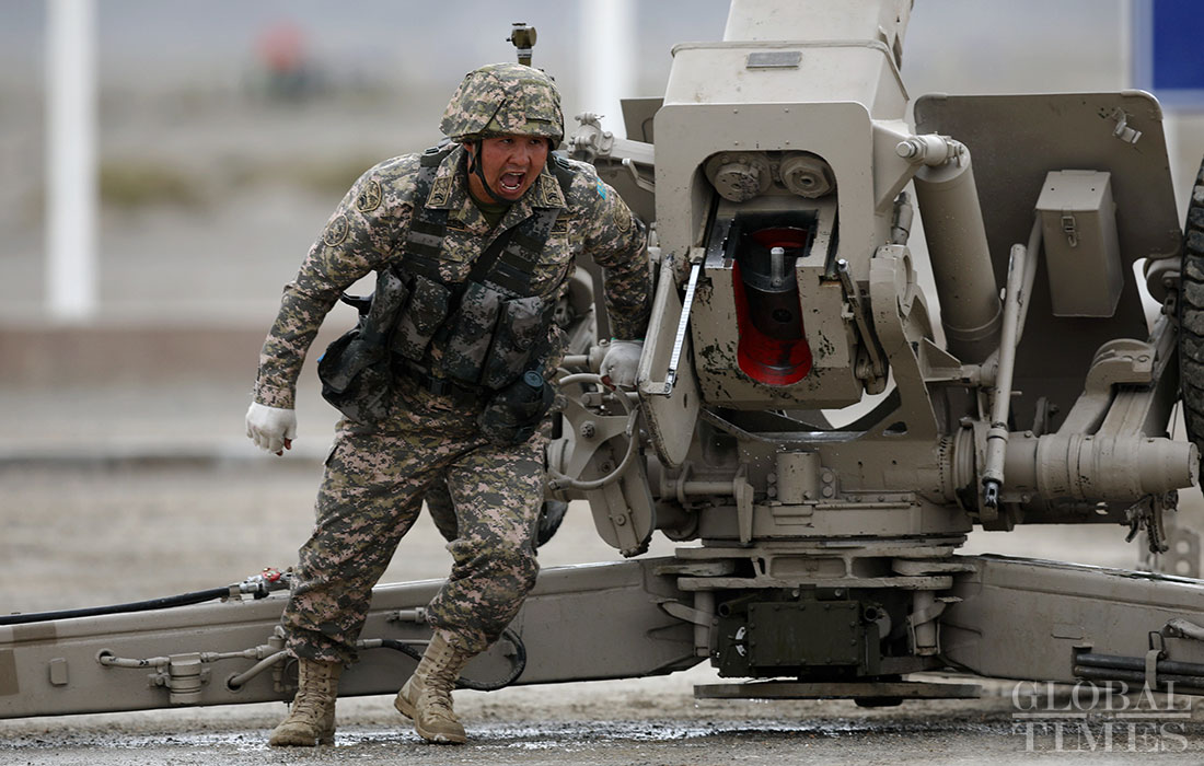 Kazakh team competes at "Gunsmith Master" howitzer repairing race. Photo: Cui Meng/GT figcaption >