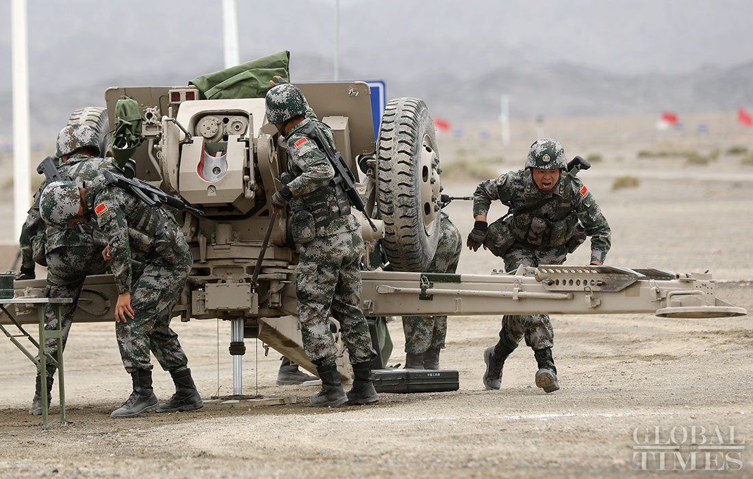 Chinese team competes at "Gunsmith Master" howitzer repairing race. Photo: Cui Meng/GT