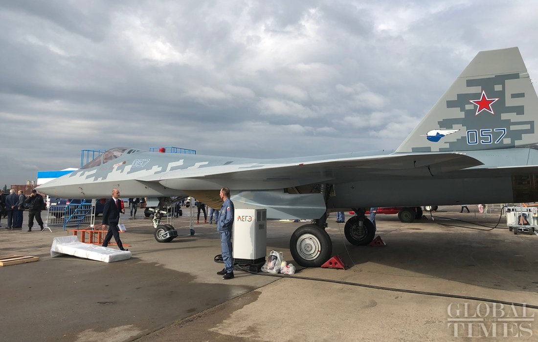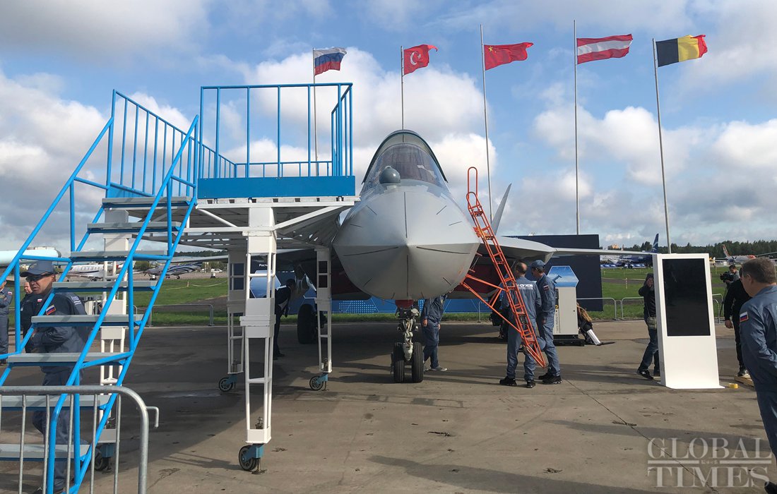 Russia's most advanced fighter jet, Su-57, is on display at 2019 MAKS. (Photos: Liu Xuanzun/GT)