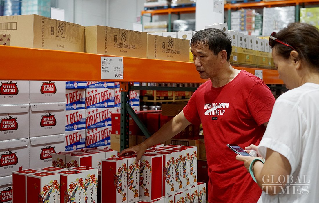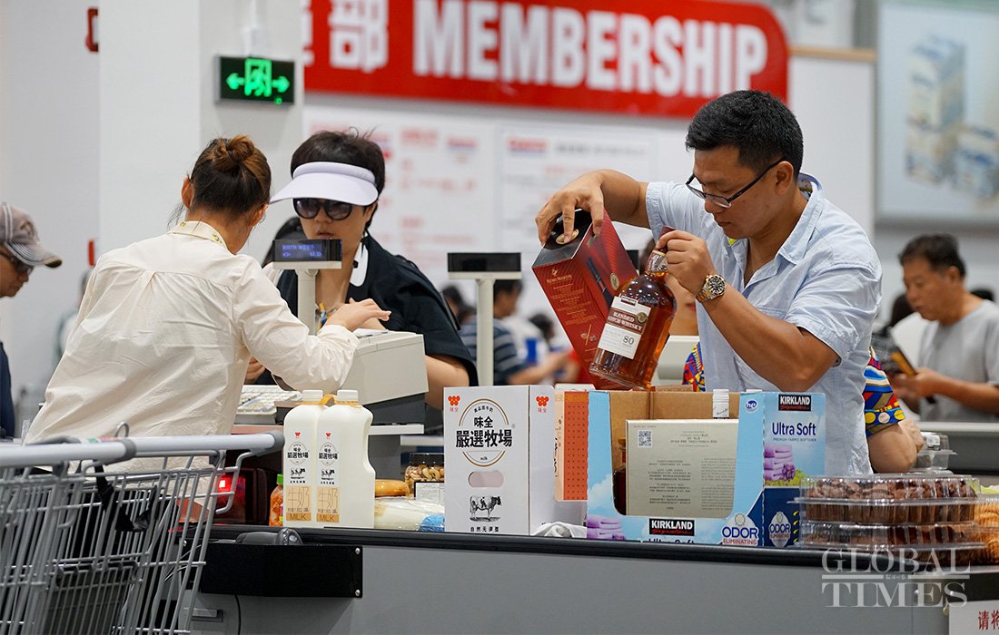 US supermarket giant Costco's second business day in China still attracted many customers after its opening in Shanghai on Tuesday. Costco said it will limit the number of members entering the warehouse to 2,000, effective Wednesday. Photos: Chen Xia/GT