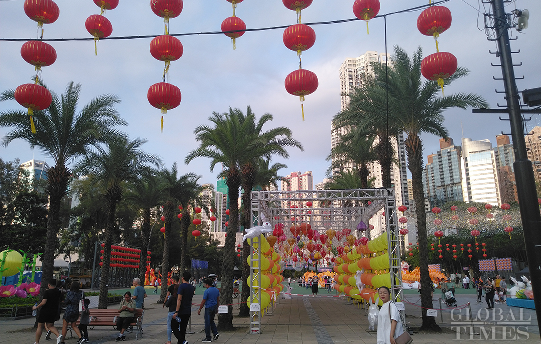 There is an air of festivity in the Victoria Park in Hong Kong on Thursday where whimsical lanterns are being displayed for the Mid-Autumn Festival, which falls on Friday this year. Photos: Li Qiaoyi, Cui Tianye/GT