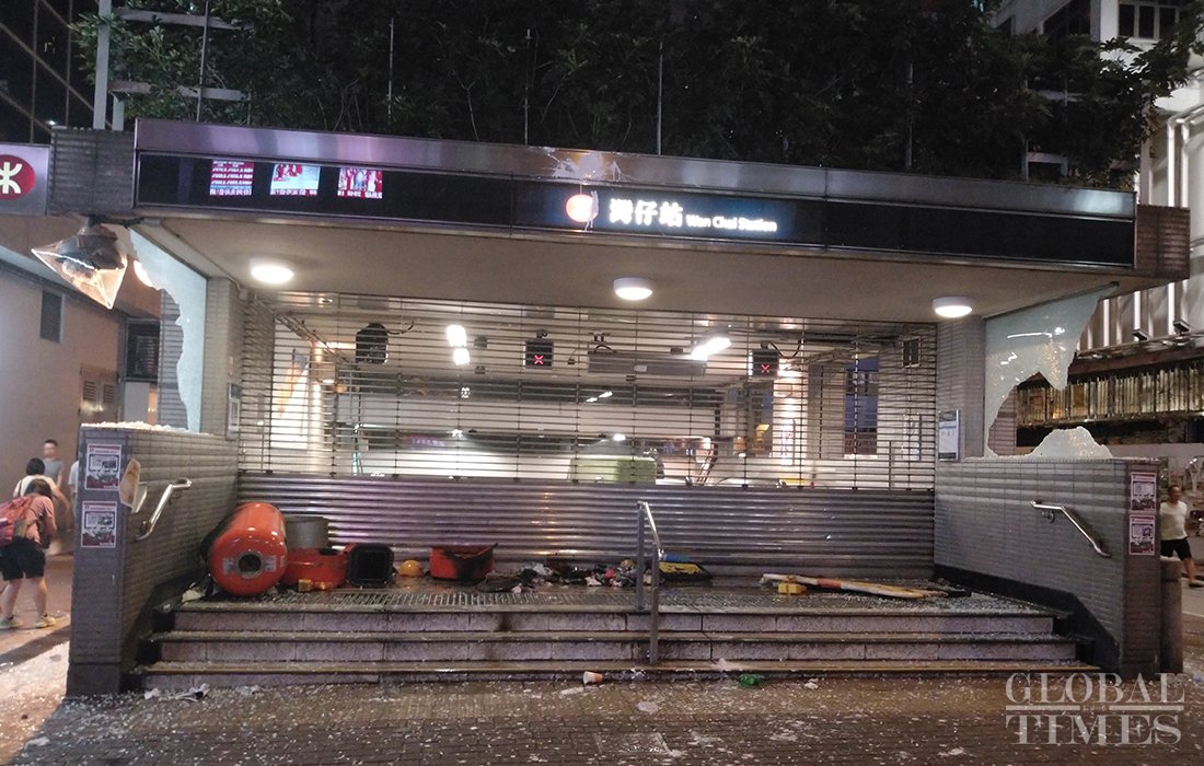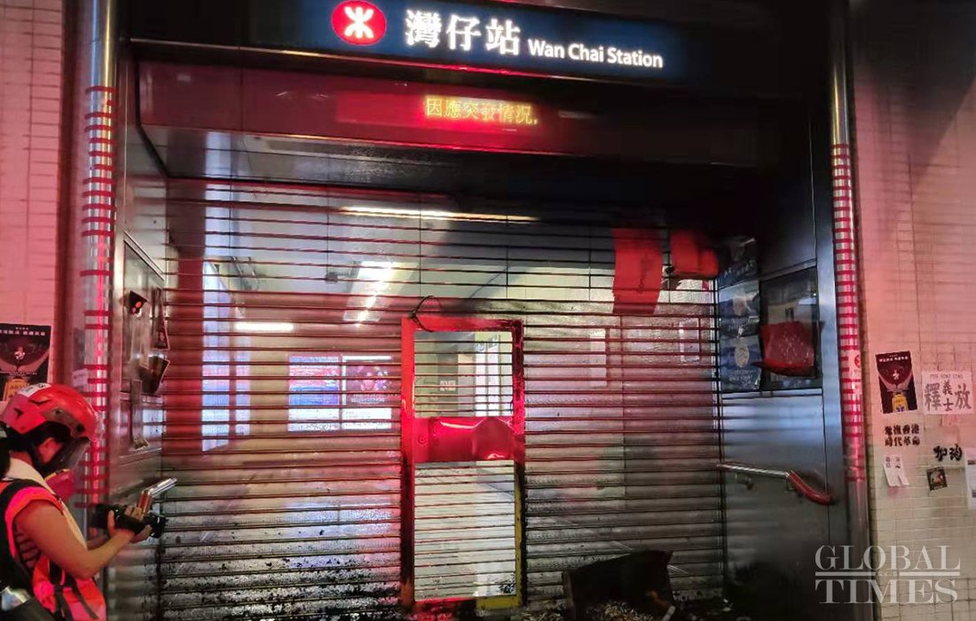 Radical rioters damaged several MTR stations including Wan Chai and Admiralty on Sunday afternoon, setting fire in front of the stations and vandalized facilities.