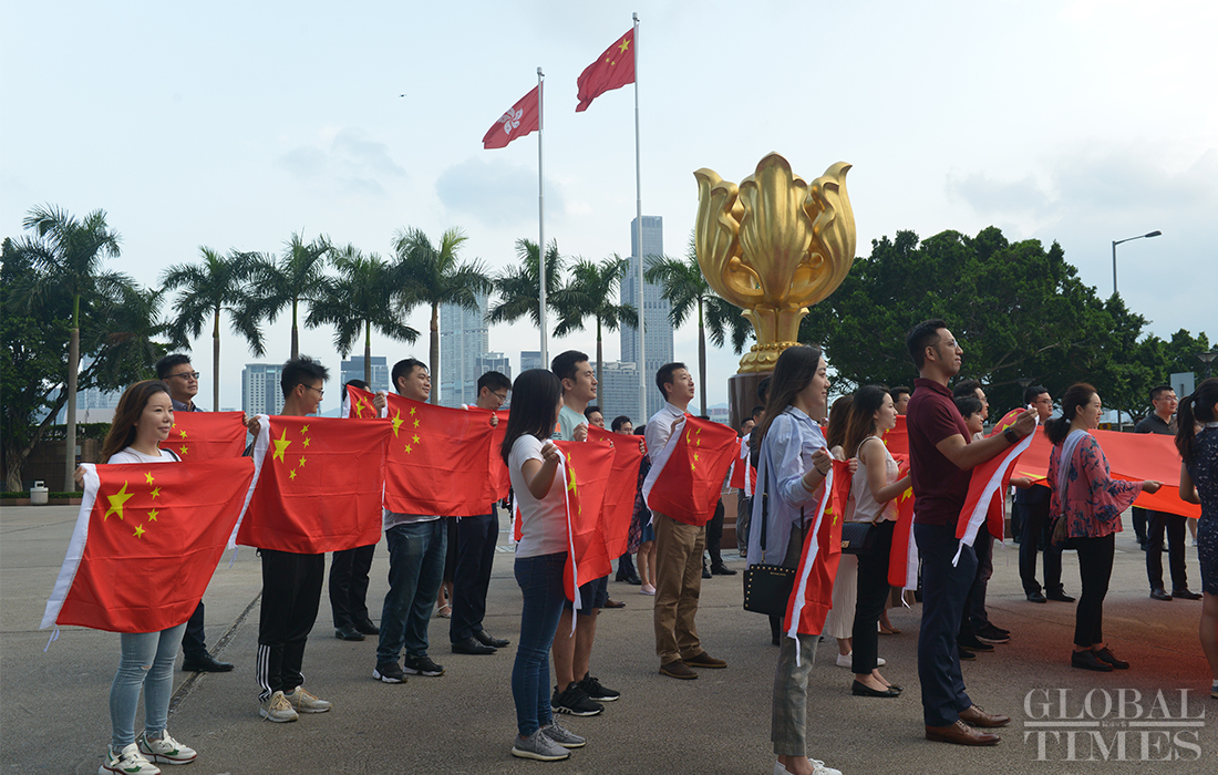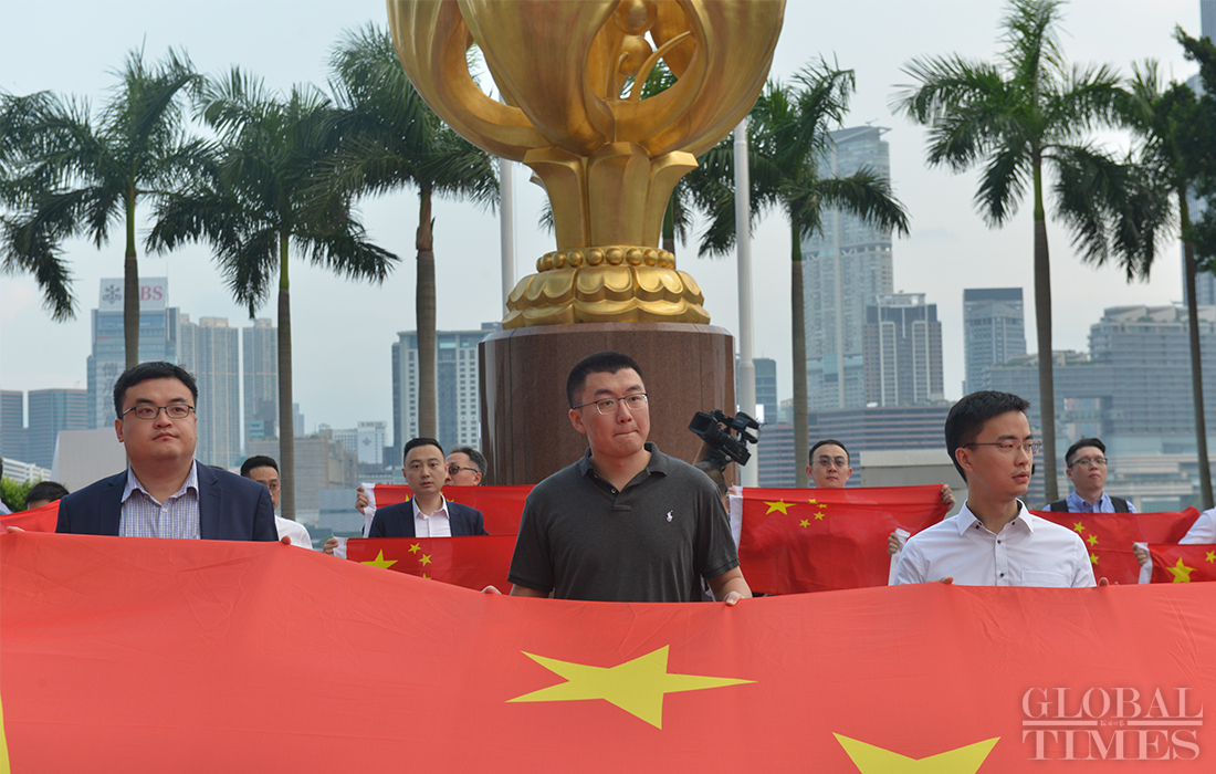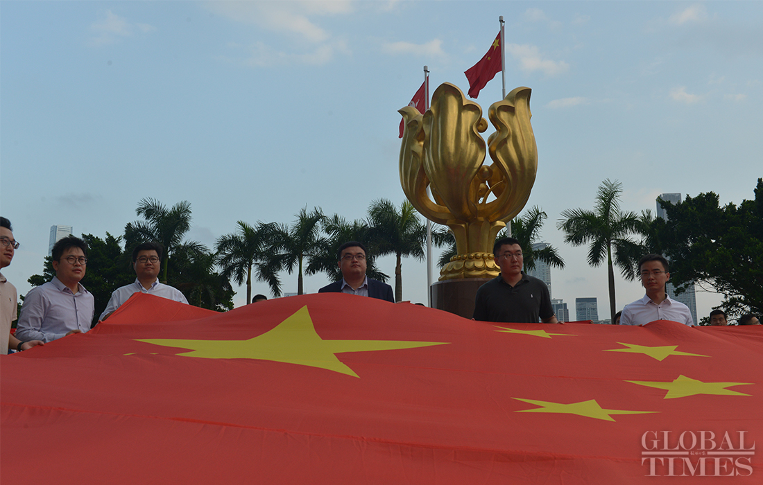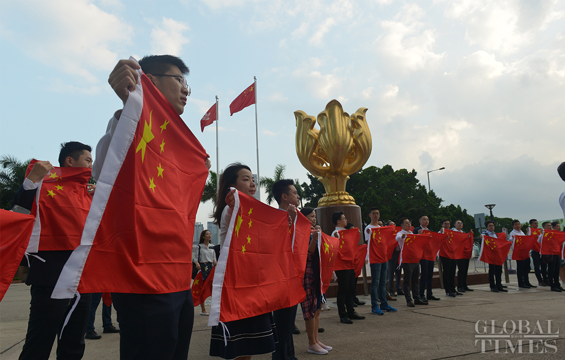 About a hundred of young people working in Hong Kong gathered at the Golden Bauhinia Square on Tuesday to commemorate the 70th anniversary of the founding of the People's Republic of China.Photos: Zhao Juecheng/GT