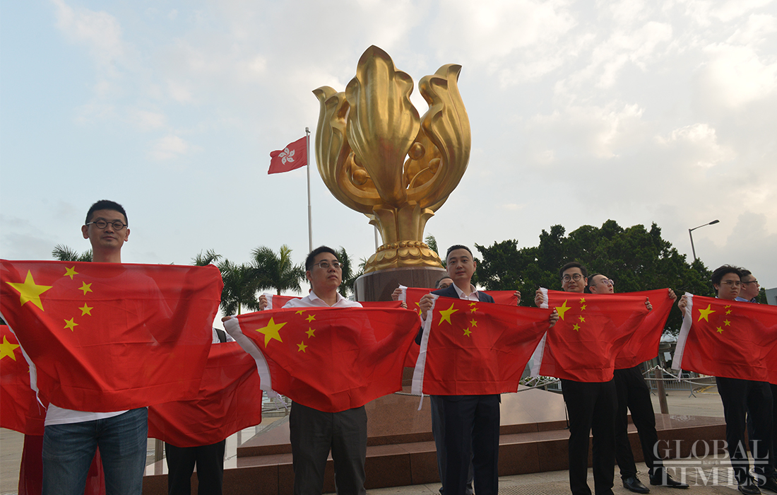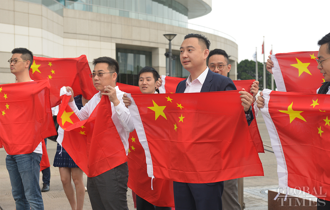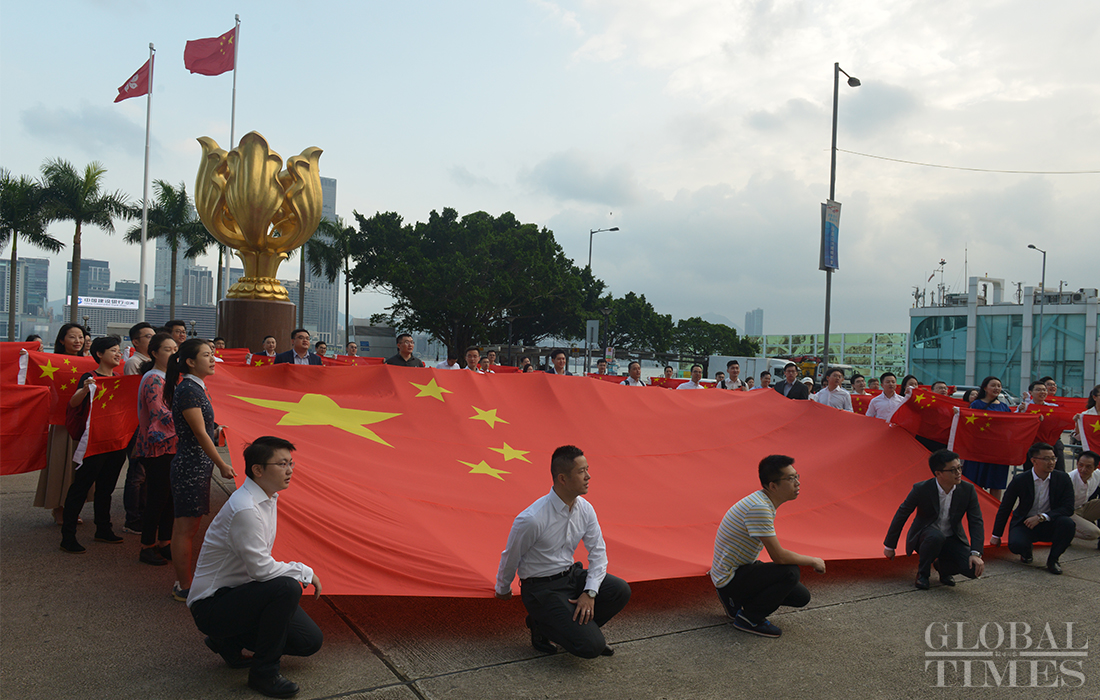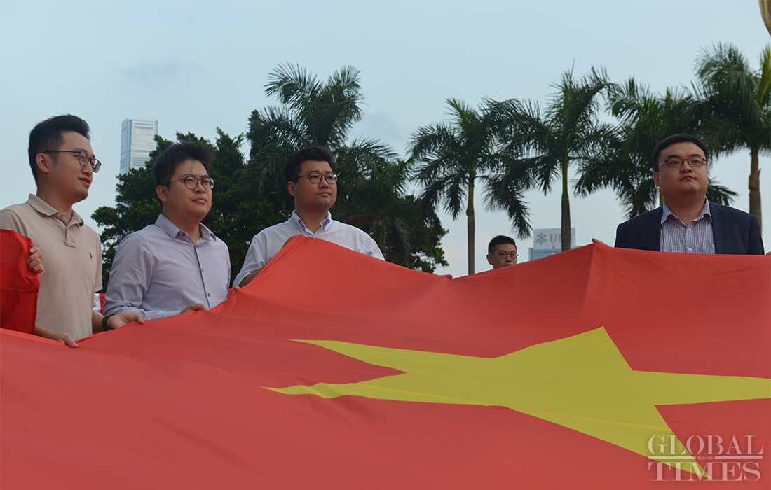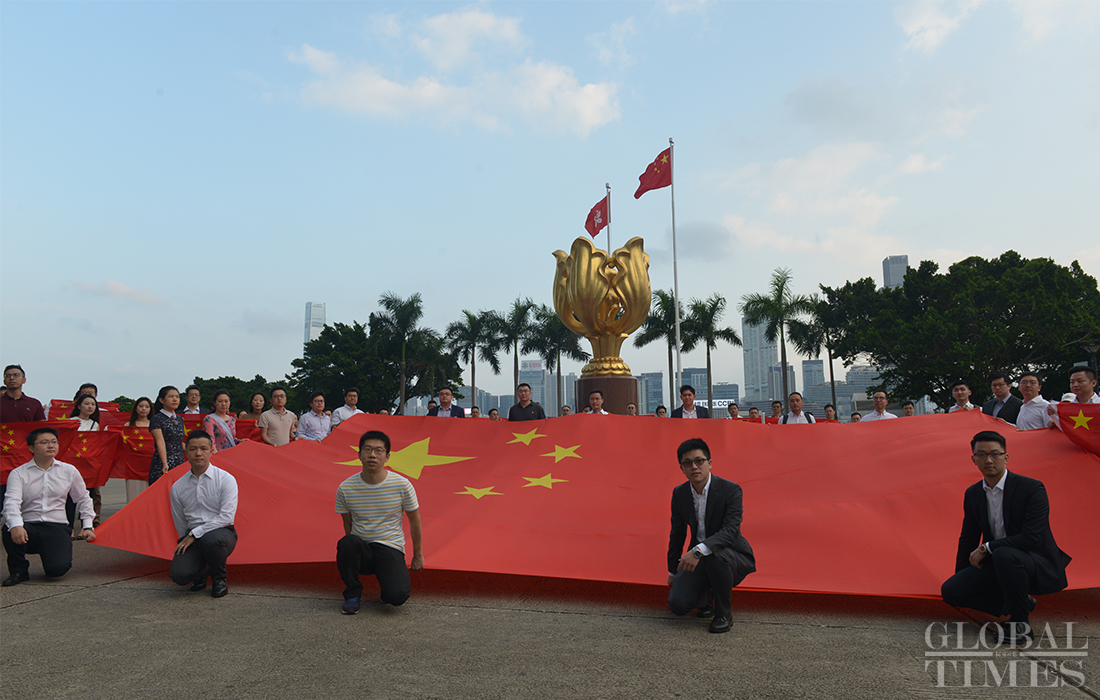 About a hundred of young people working in Hong Kong gathered at the Golden Bauhinia Square on Tuesday to commemorate the 70th anniversary of the founding of the People's Republic of China.Photos: Zhao Juecheng/GT