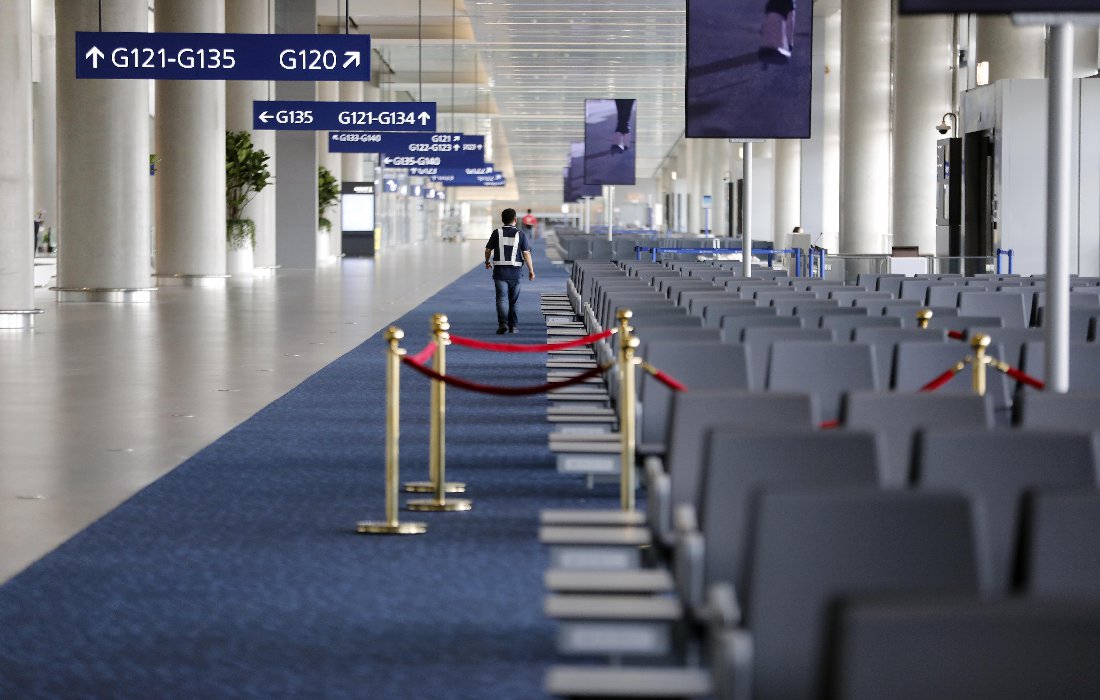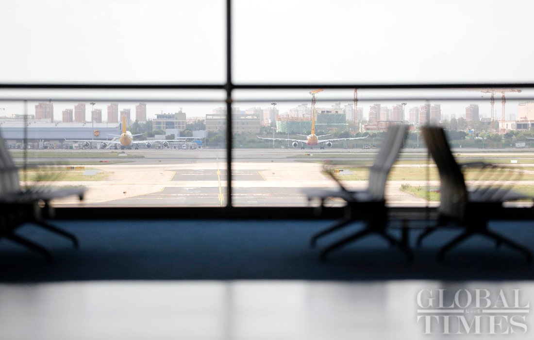 An overview of the satellite hall’s waiting area in the Pudong International Airport on Monday. Photo: Yang Hui/GT figcaption >