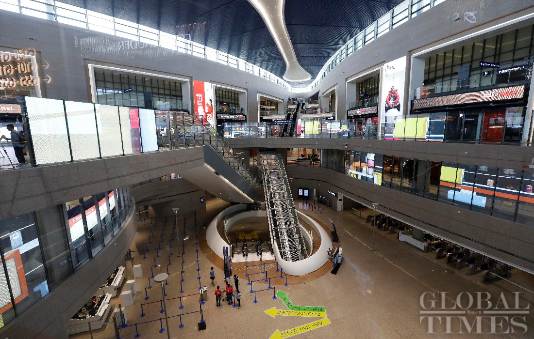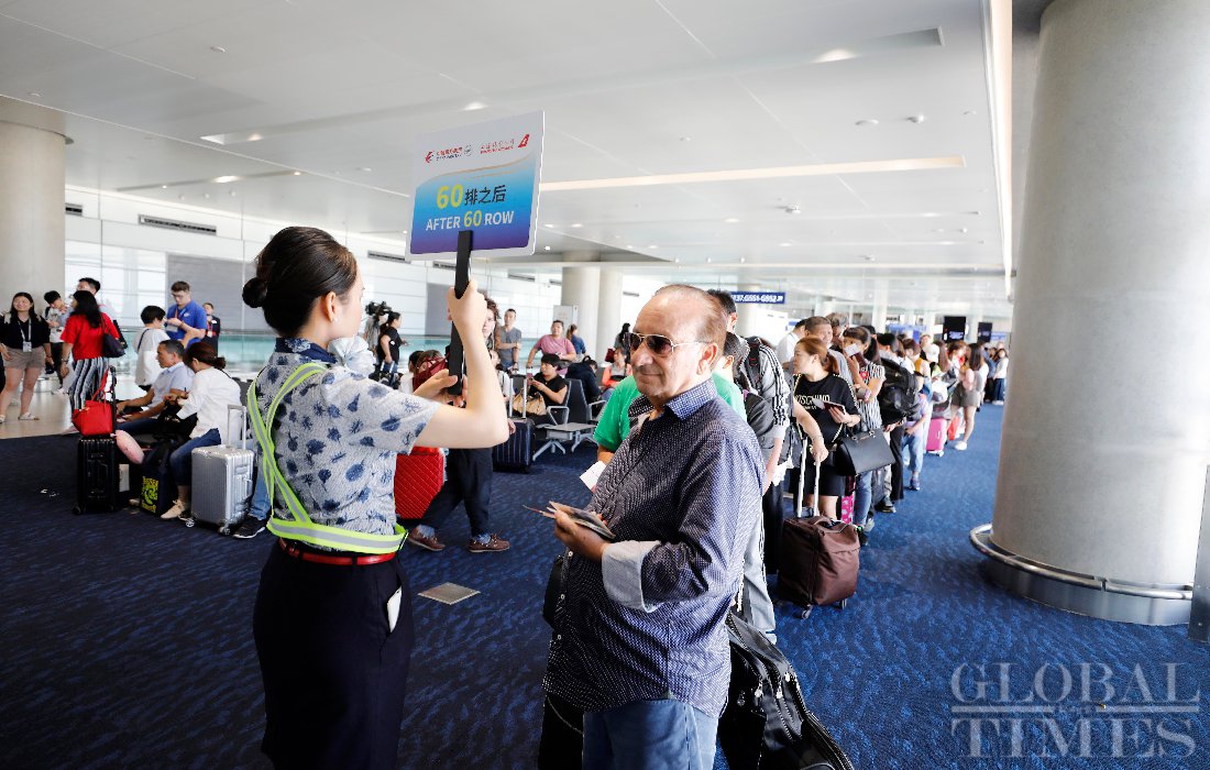 An ariel view of the transfer counters in the satellite hall on Monday. Photo: Yang Hui/GT figcaption >