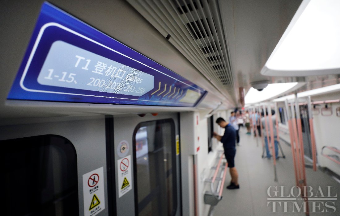 The Pudong International Airport Rapid Transit System is connected with the satellite hall. Photo: Yang Hui/GT figcaption >