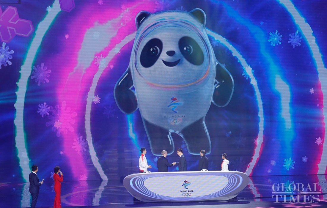 The mascots for the Beijing 2022 Winter Olympic Games and Winter Paralympic Games named Bing Dwen Dwen and Shuey Rhon Rhon were revealed at Beijing's Shougang Ice Hockey Arena on Tuesday.