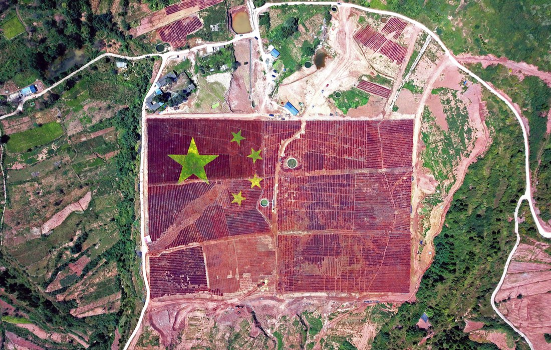 Chinese national flag portrayed on a slope in Chengdu, Southwest China’s Sichuan Province Photos: VCG