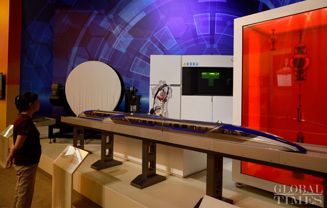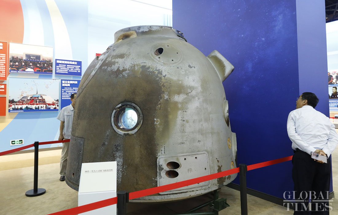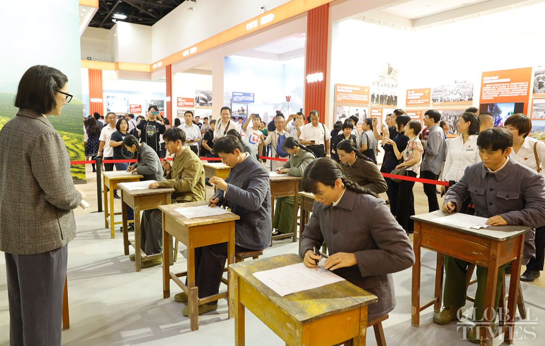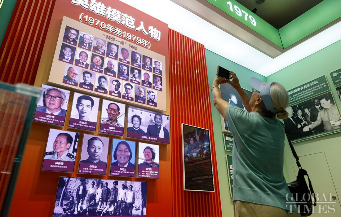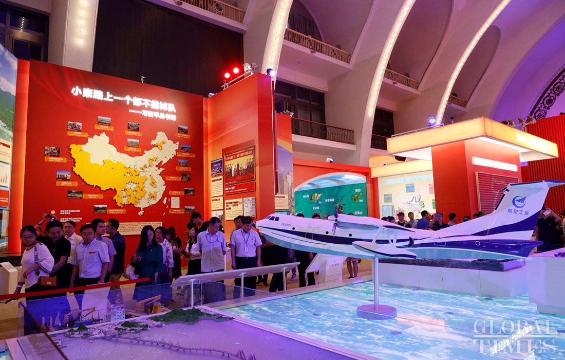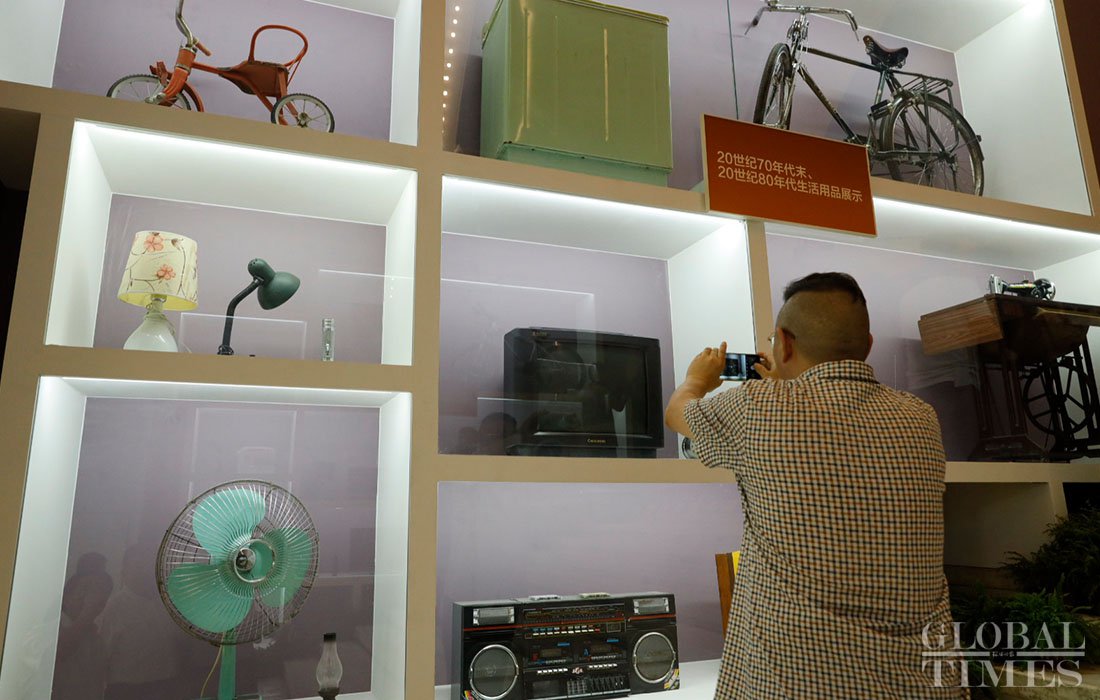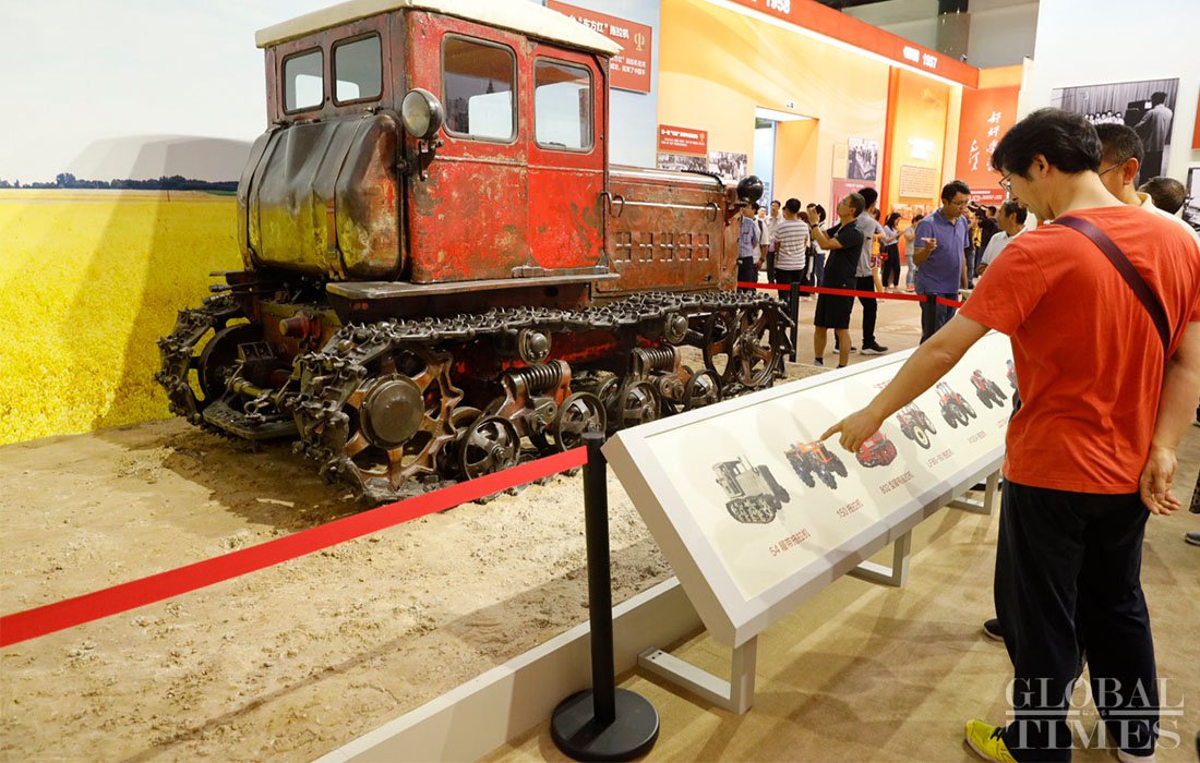 Spectators visiting the exhibition of achievement in commemoration of the 70th founding anniversary of the PRC said their heart swelled with pride and they were exhilarated to see the country's progress. The grand exhibition opened to the public on Tuesday at the Beijing Exhibition Center. Photos: Li Hao/GT