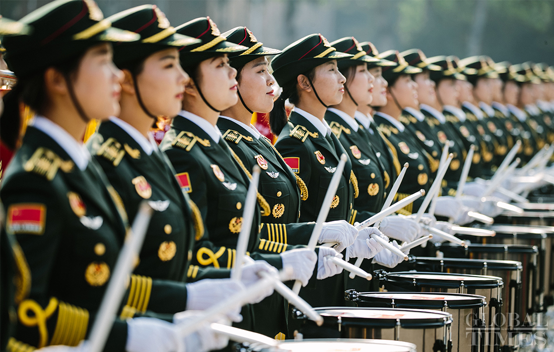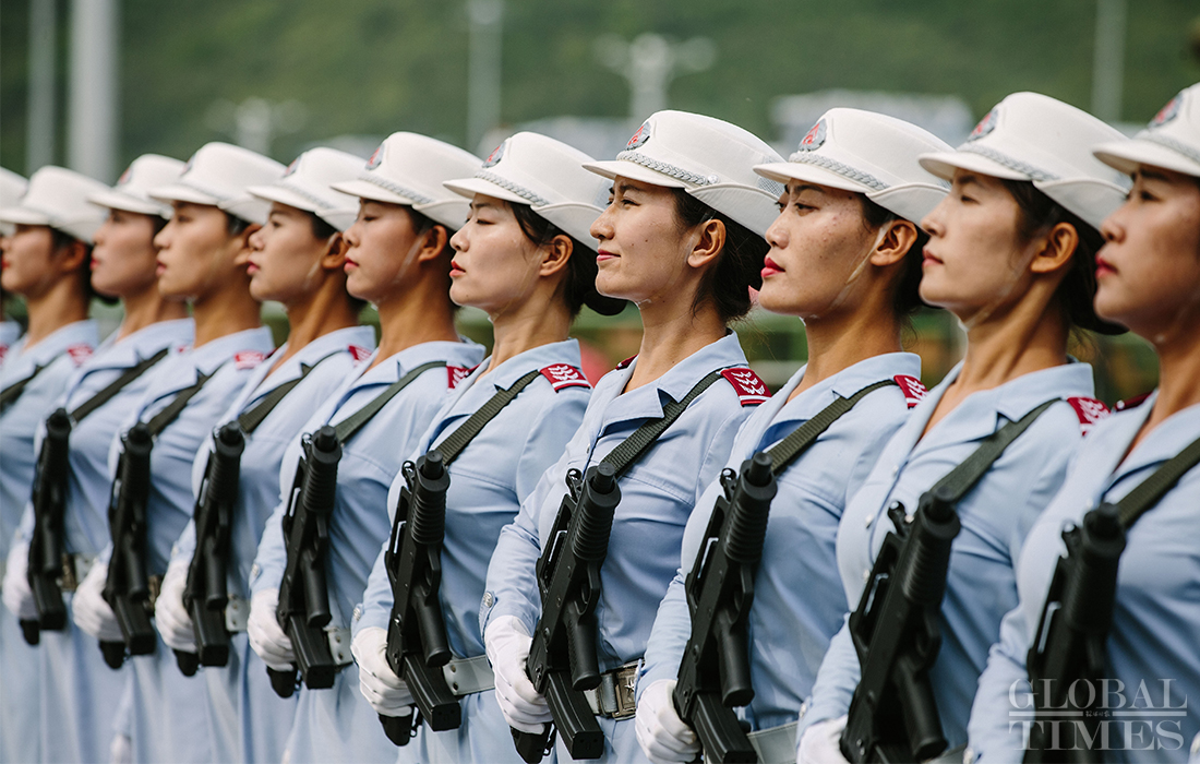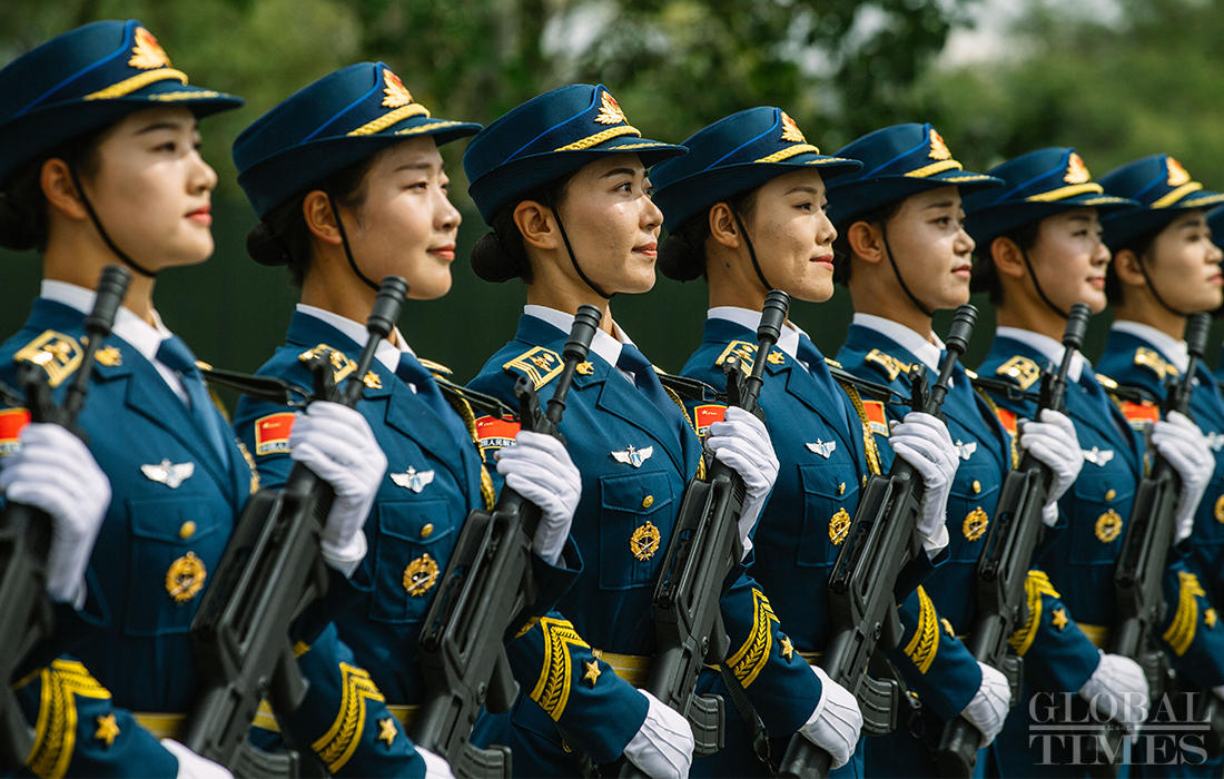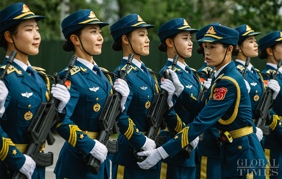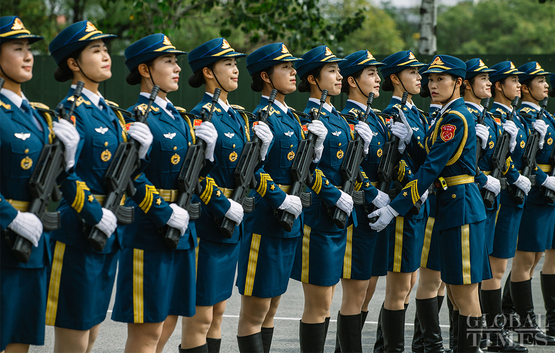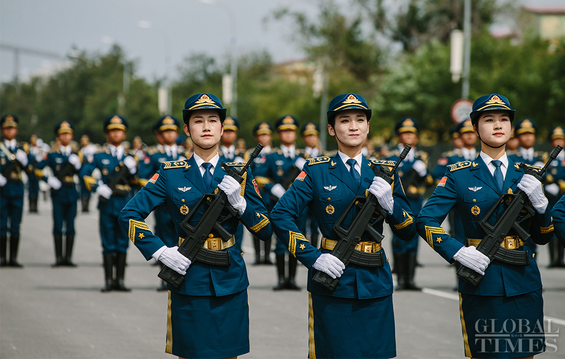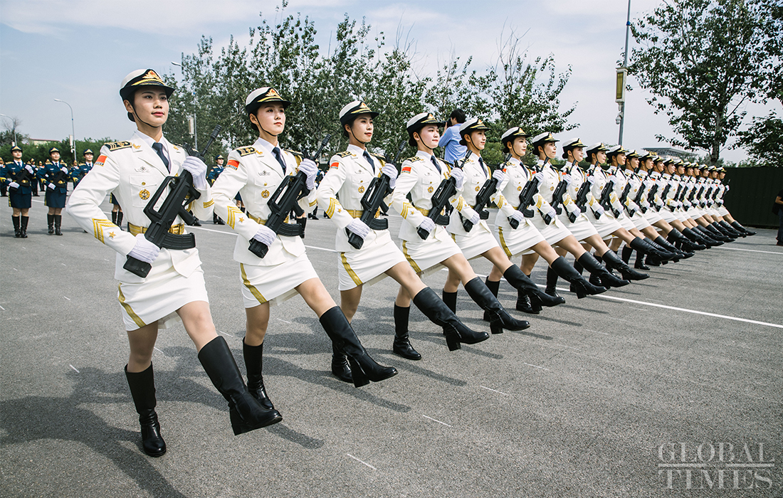 In preparation of the 70th National Day parade, the phalanx of female militia conduct training at the parade training center in Changping district, Beijing, on September 17, 2019. Photo: Li Hao/GT figcaption >