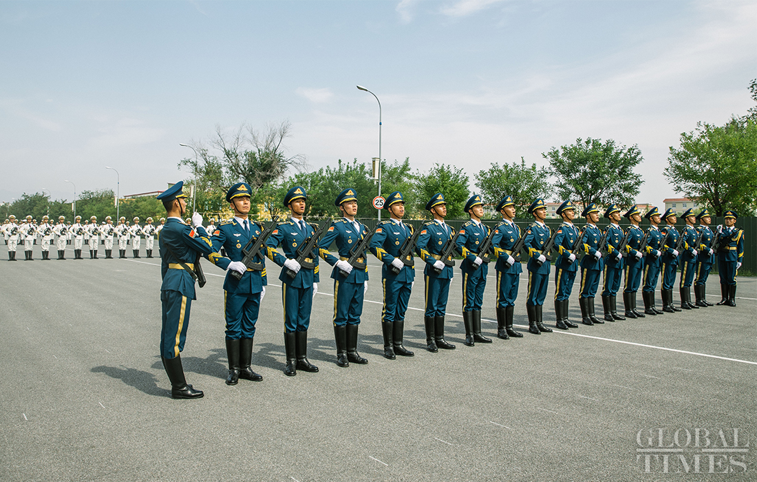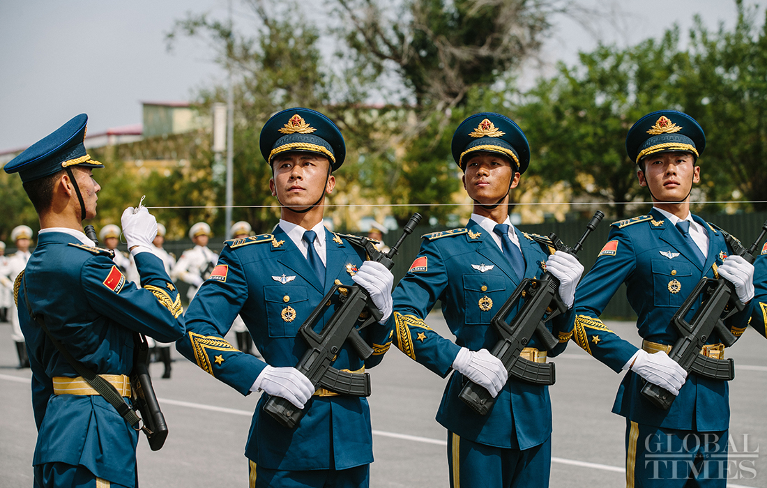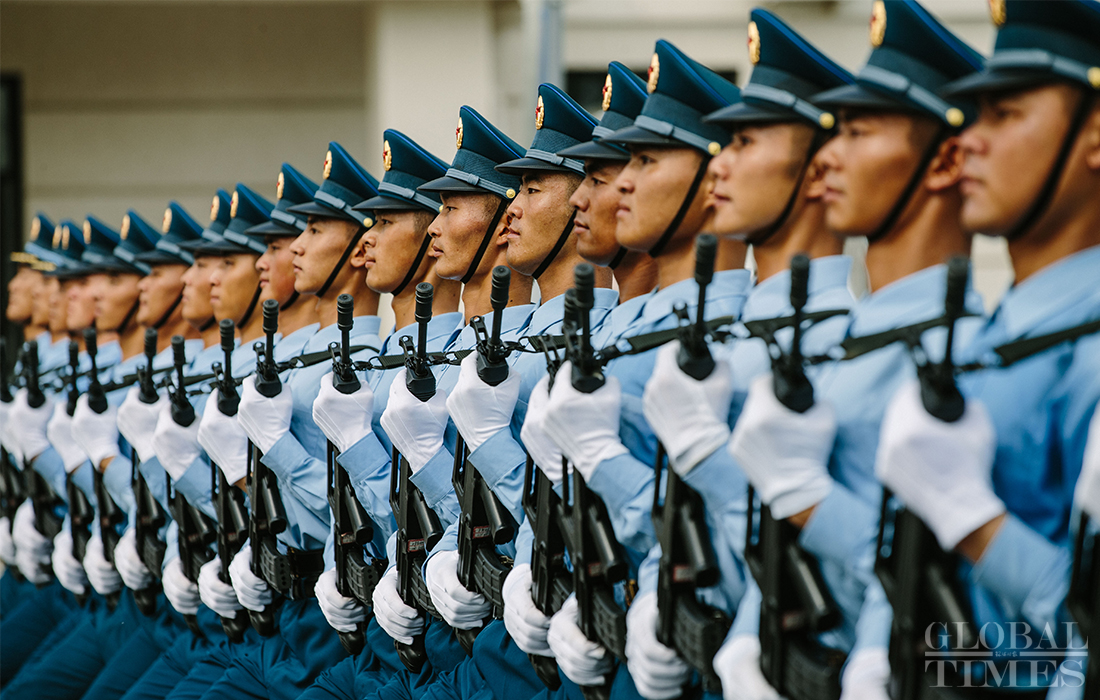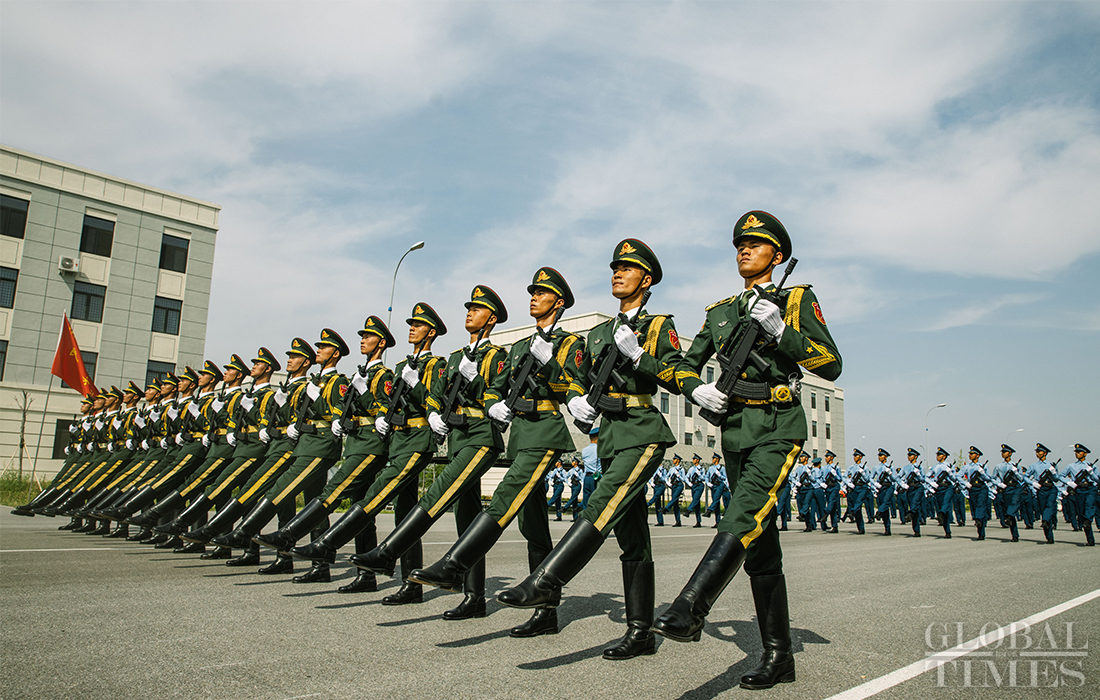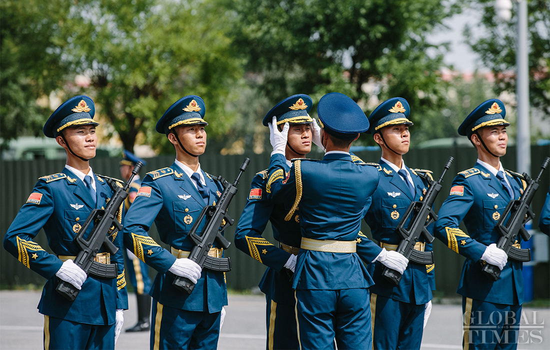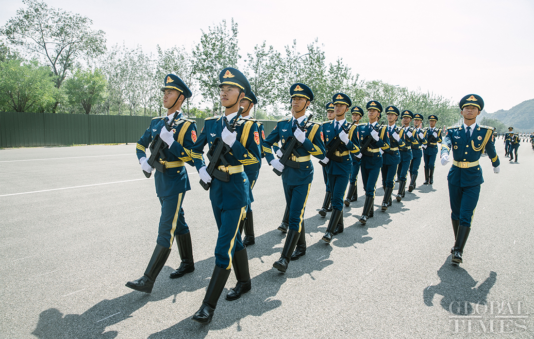 In preparation of the 70th National Day parade, the phalanx of honor guards of army, navy and air force of the Chinese People’s Liberation Army conduct training at the parade training center in Changping district, Beijing, on September 17, 2019. Photo: Li Hao/GT
