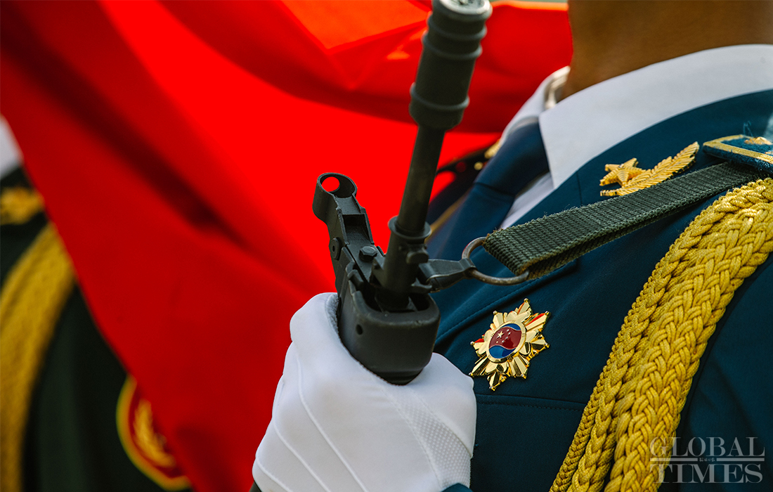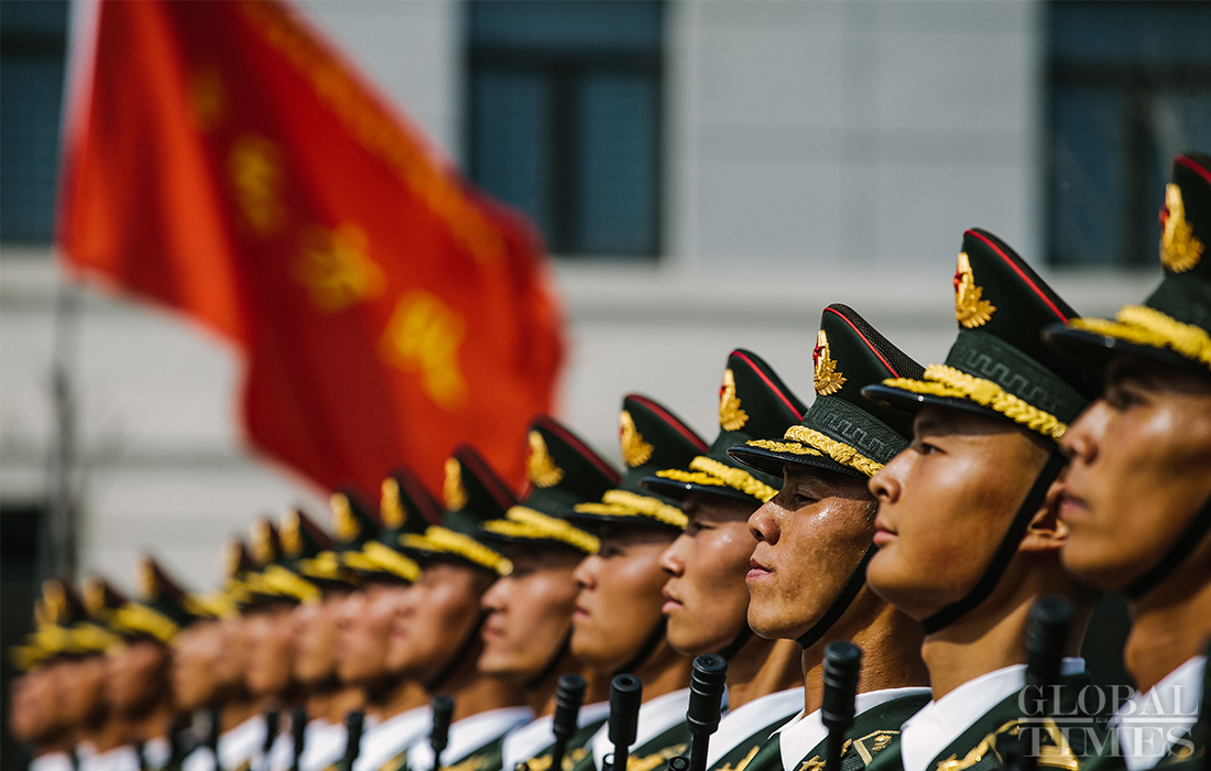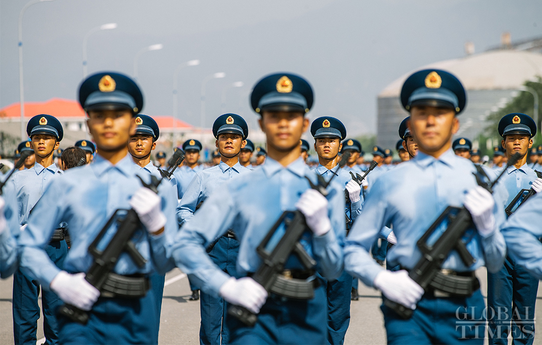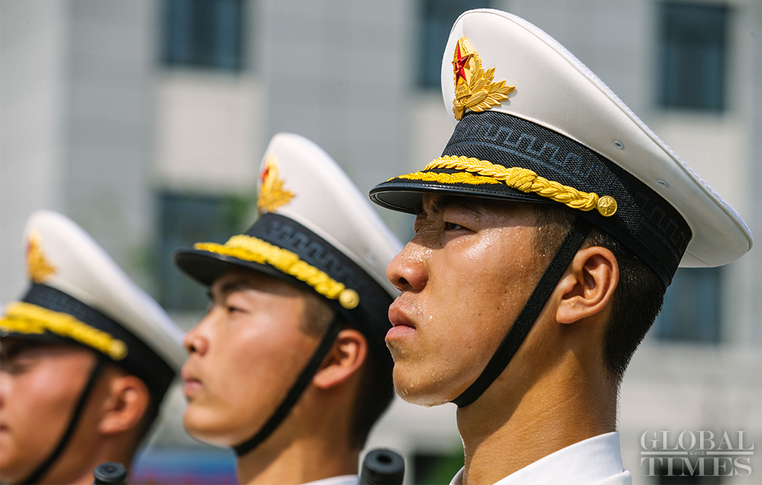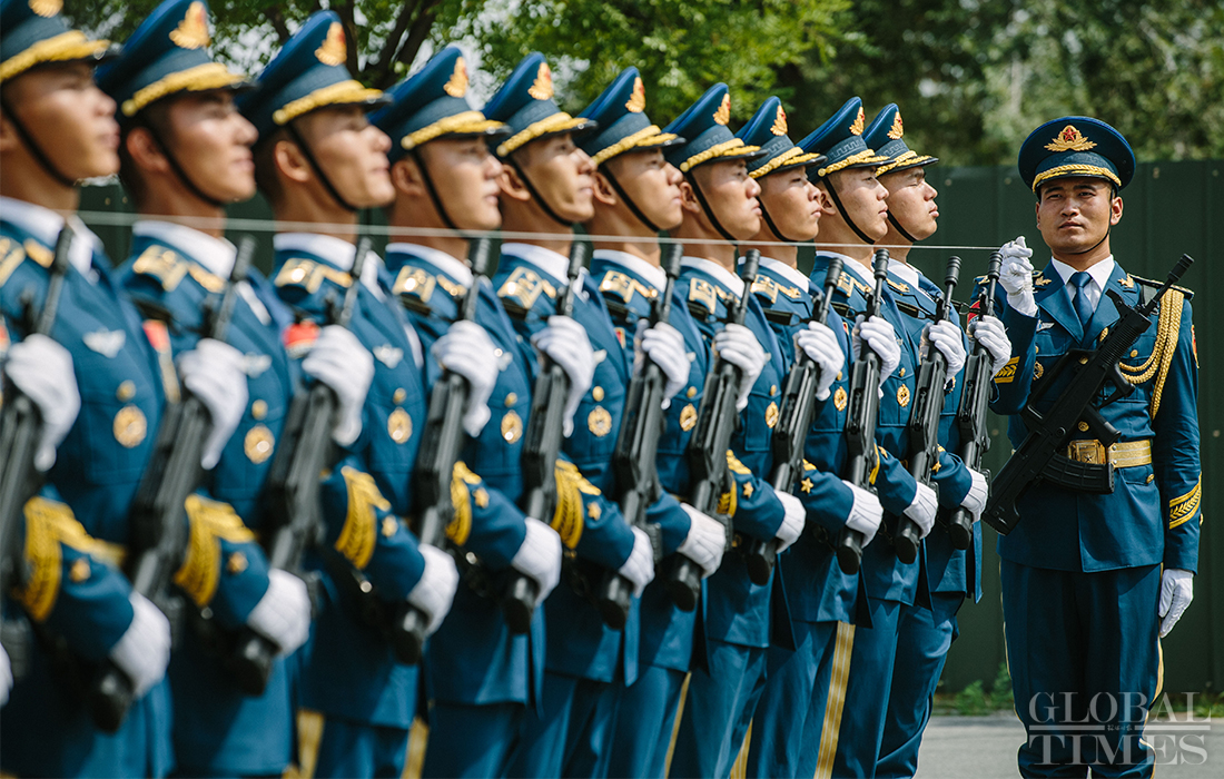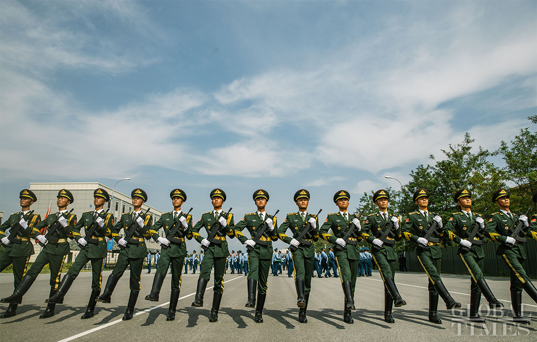 In preparation of the 70th National Day parade, the phalanx of honor guards of army, navy and air force of the Chinese People’s Liberation Army conduct training at the parade training center in Changping district, Beijing, on September 17, 2019. Photo: Li Hao/GT