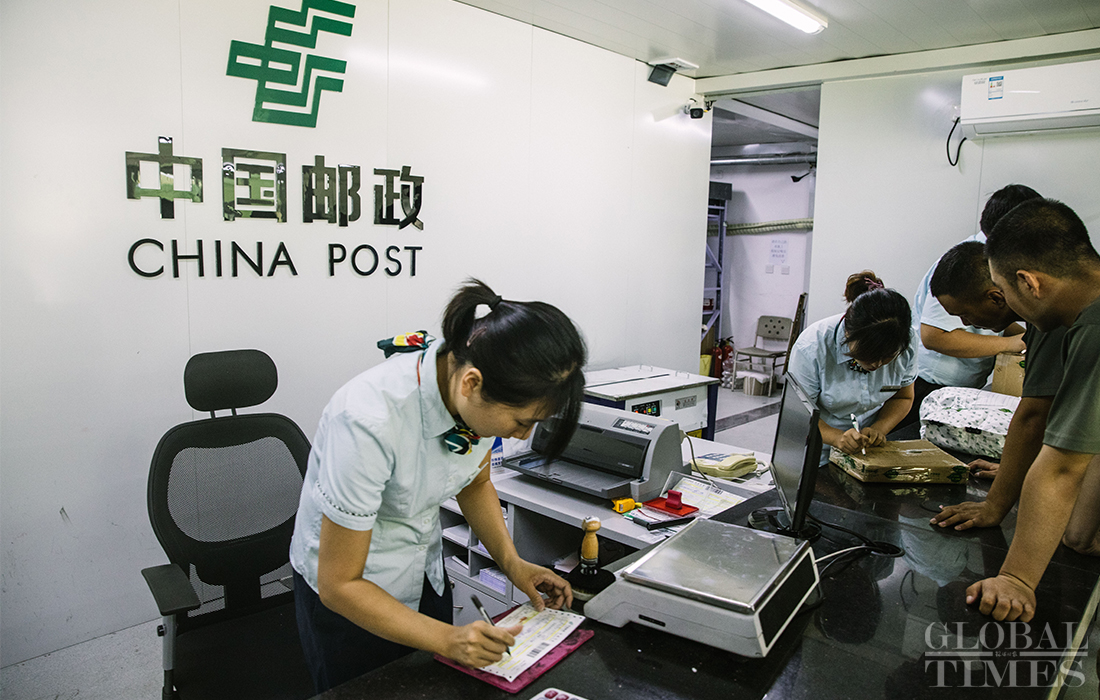 Parade training participants receive and send packages at a post office in the parade training center in Changping district, Beijing on September 17, 2019. Photo: Li Hao/GT figcaption >