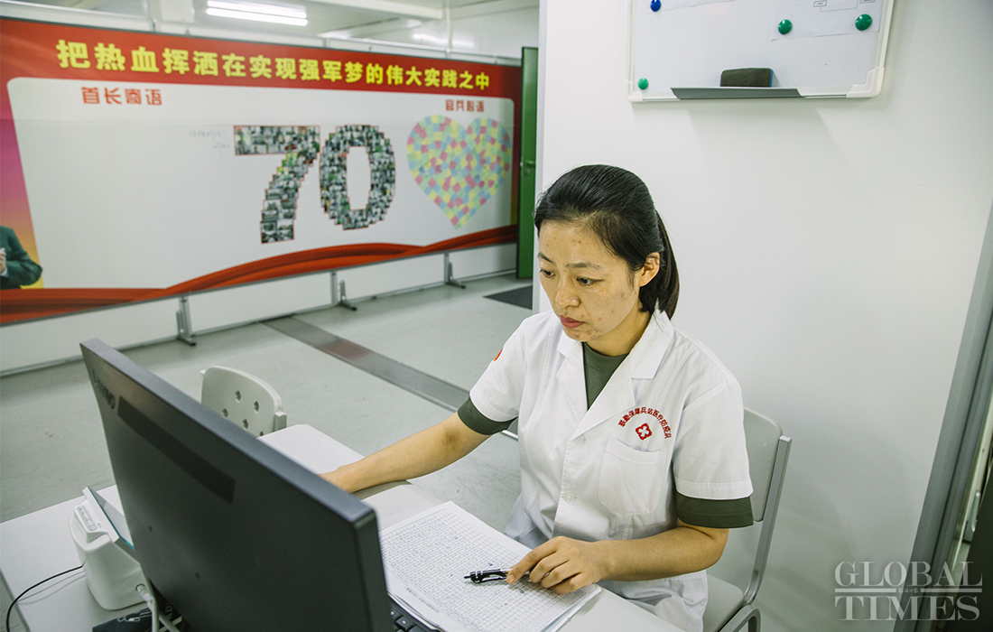 A medical staff member at the parade training center in Changping district, Beijing works on September 17, 2019. Photo: Li Hao/GT figcaption >