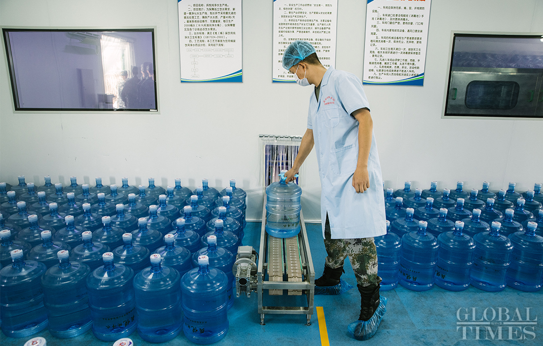 A staff member prepares drinking water at the parade training center in Changping district, Beijing on September 17, 2019. Photo: Li Hao/GT figcaption >