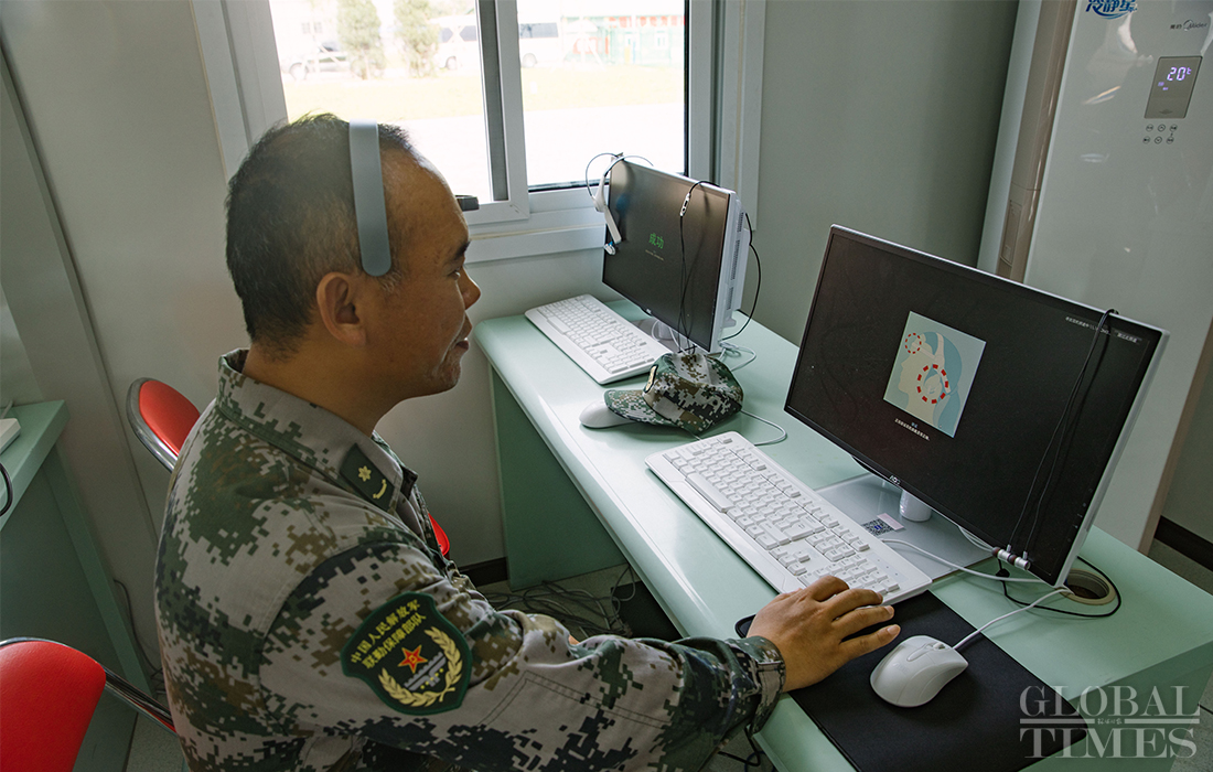 A psychologist demonstrates software used for psychotherapy at the parade training center in Changping district, Beijing on September 17, 2019. Photo: Li Hao/GT figcaption >
